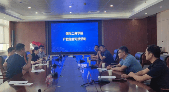 2023年7月19日,国际工商学院在在行政楼902会议室举办校企产教融合对接活动。活动邀请了北京络捷斯特科技发展股份有限公司董事长邵清东,北京络捷斯特科技发展股份有限公司河南办事处主任李桦婷,河南省国际货运代理协会秘书长王文辉,上海台骅货运代理有限公司郑州公司总经理孔卫东,北京中科富创科技有限公司河南公司总经理贺明等参加,国际工商学院院长孙权、招生就业中心主任邝安全、教务处副处长张泽建、现代物流管理教研室主任陈玉杰及骨干教师牛波瑞一同参加。