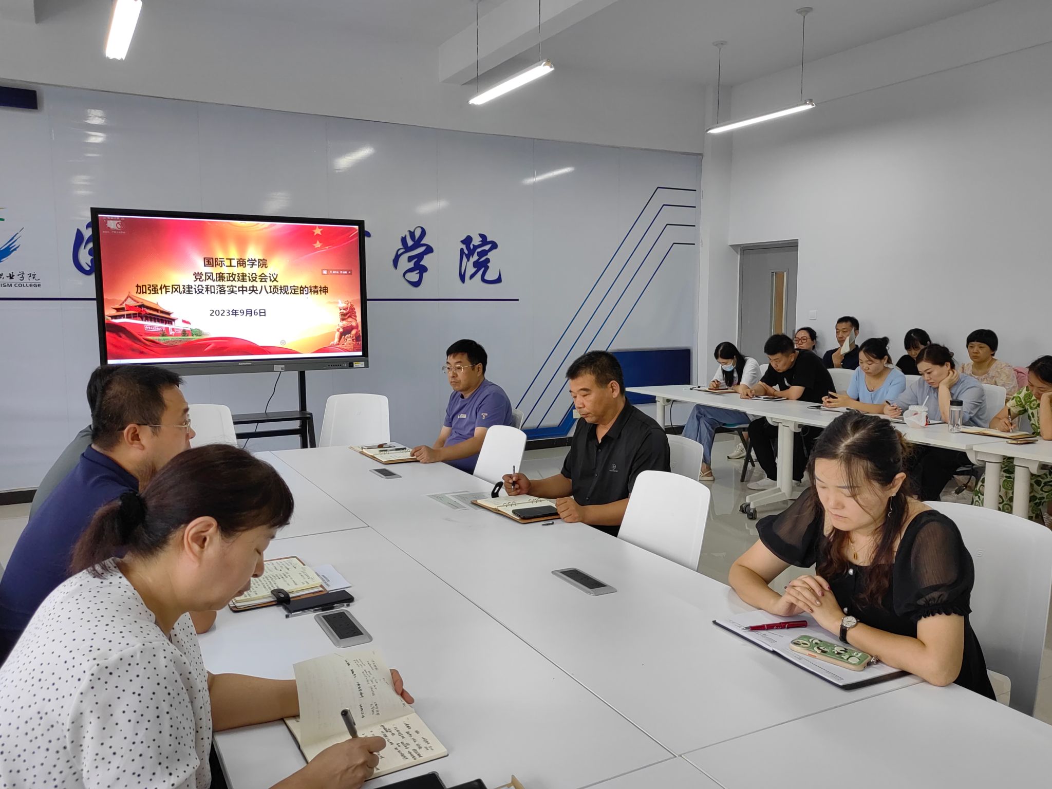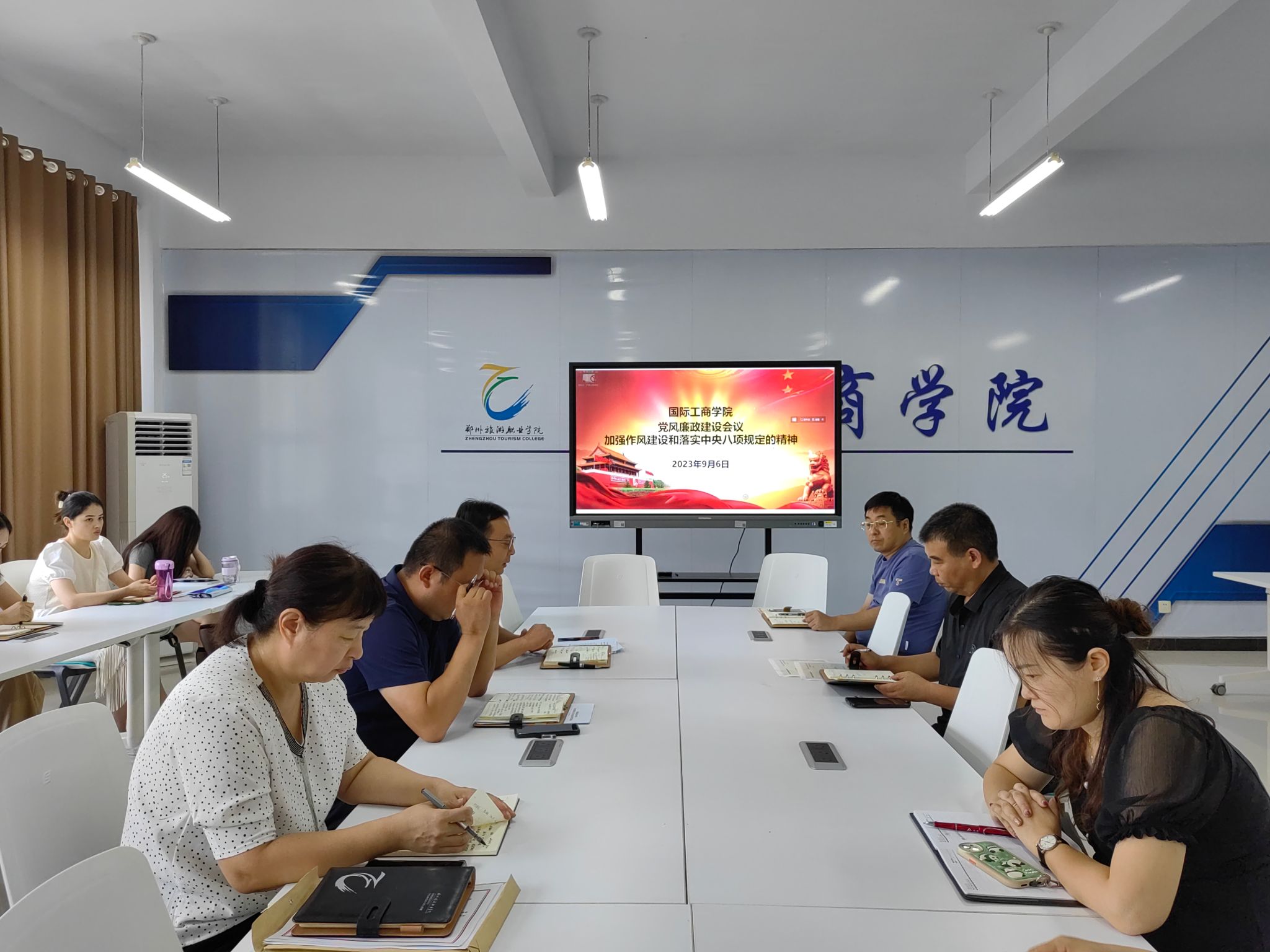 为深入贯彻党的二十大精神,进一步抓好中央八项规定精神 的贯彻落实。9月6日,国际工商学院在1B304会议室召开党风廉政建设会议暨加强作风建设和深入学习落实中央八项规定精神。我院党总支书记张鹏出席会议,总支委员及全体教师参加会议。会议由张鹏书记主持。