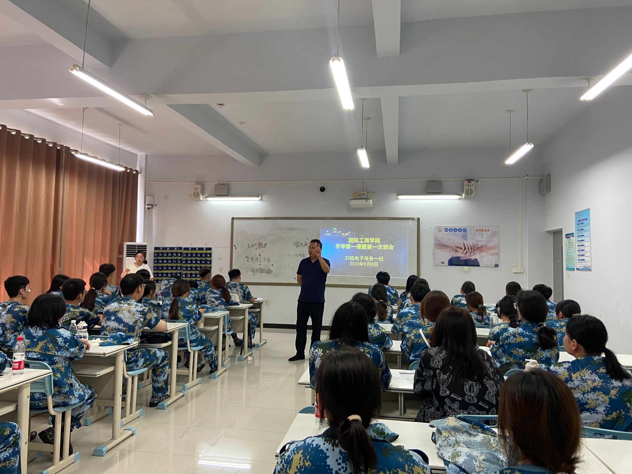 9月8日下午一点,国际工商学院2023级新生在各班班主任的主持下迎来开学报到后的第一次班会。国际工商学院院长孙权亲临23级各班新生班会,与他们进行见面交流。