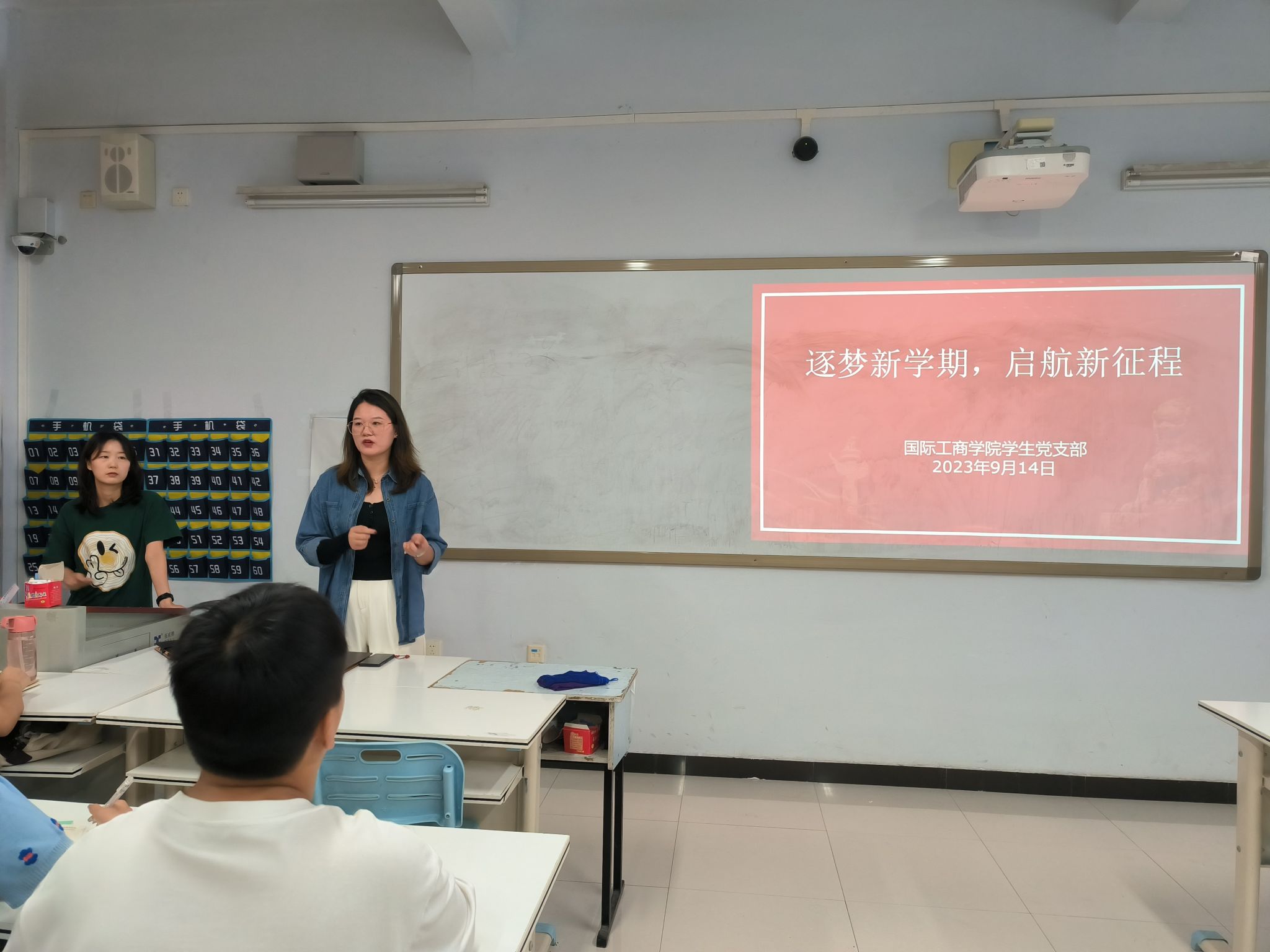 新学期伊始,为切实加强党组织建设,进一步了解各入党积极分子的思想状况,上好“必修课”,系牢“思想扣”的教育工作。9月14日,国际工商学院学生党支部在1B203教室召开“逐梦新时代,启航新征程”新学期入党积极分子思想交流会。会议由学生党支部书记葛秀丽主持。学生党支部副书记孙文霞及22级全体入党积极分子参加。