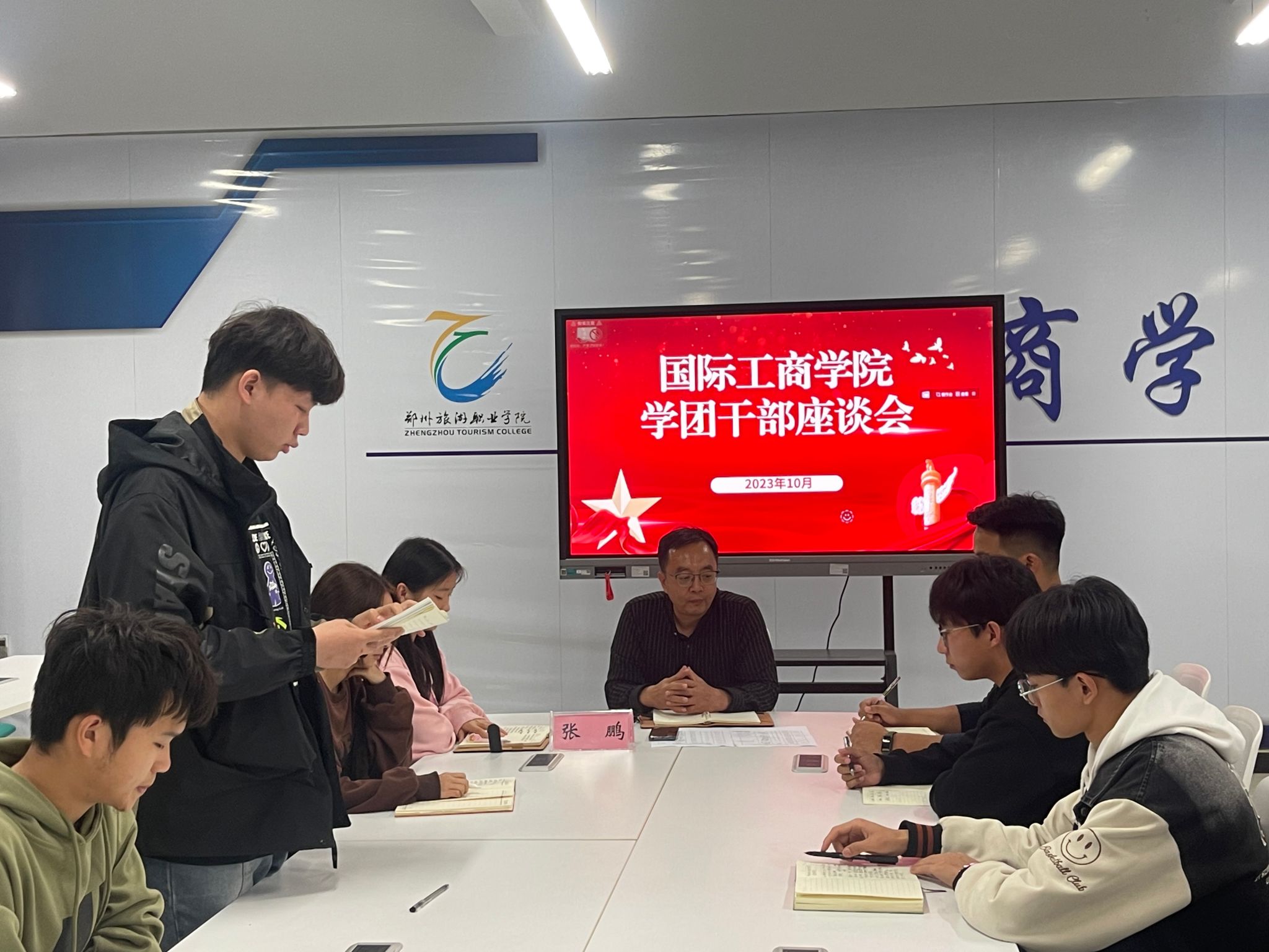 为提升学院学团组织的凝聚力,提高学生干部整体工作水平, 10月7日晚上18:40,张鹏书记在教学楼1B304会议室召开2022级学团干部座谈会。本次会议由张鹏书记主持,学生助理、学团干部参加。