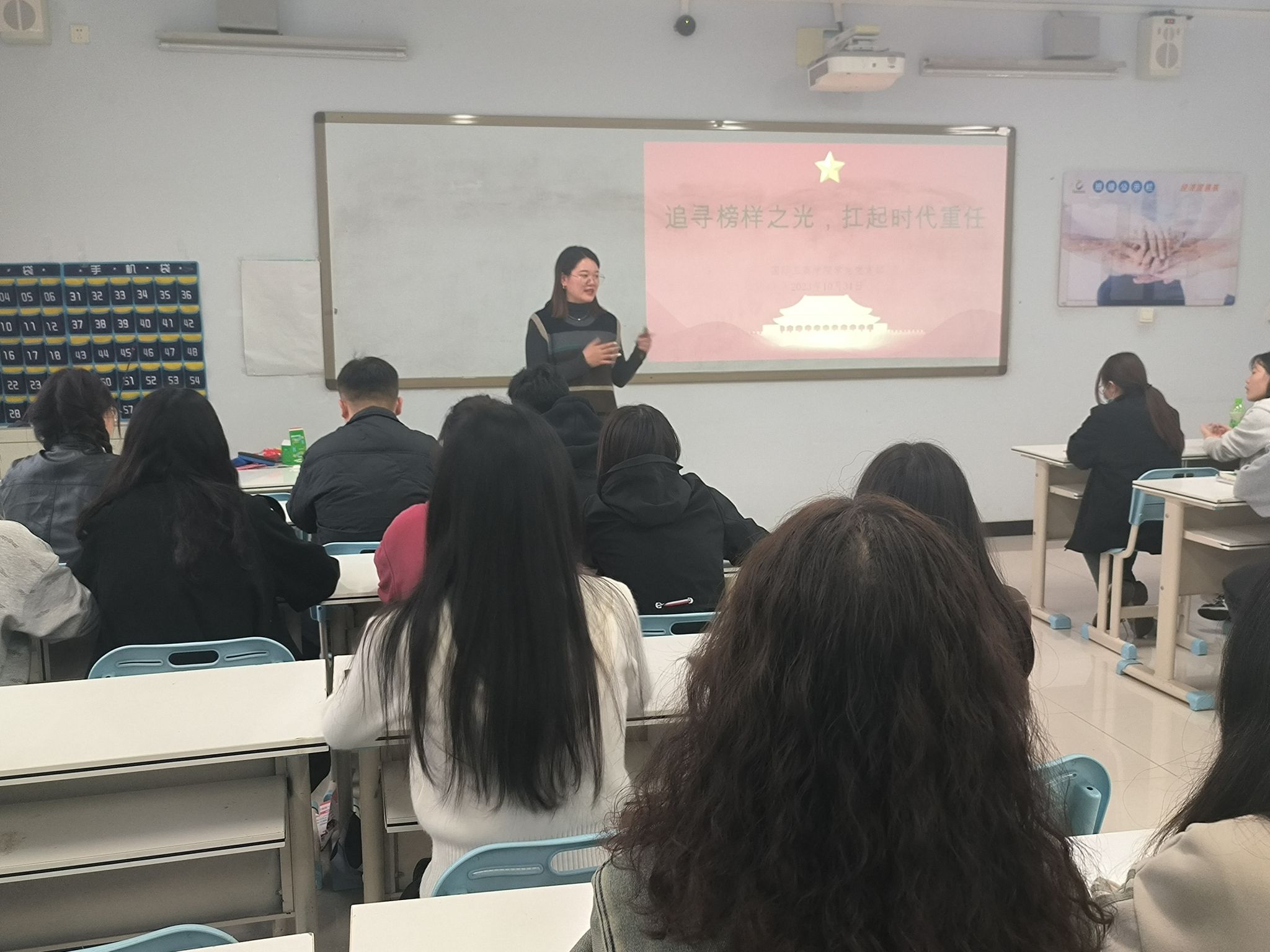 为深入学习贯彻习近平新时代中国特色社会主义思想,进一步培养学生学习榜样的精神和品质,10月31日,国际工商学院在教学楼1B501开展“追寻榜样之光,扛起时代重任”党课。本次党课由国际工商学院学生党支部书记葛秀丽讲授,22级全体入党积极分子参加党课。