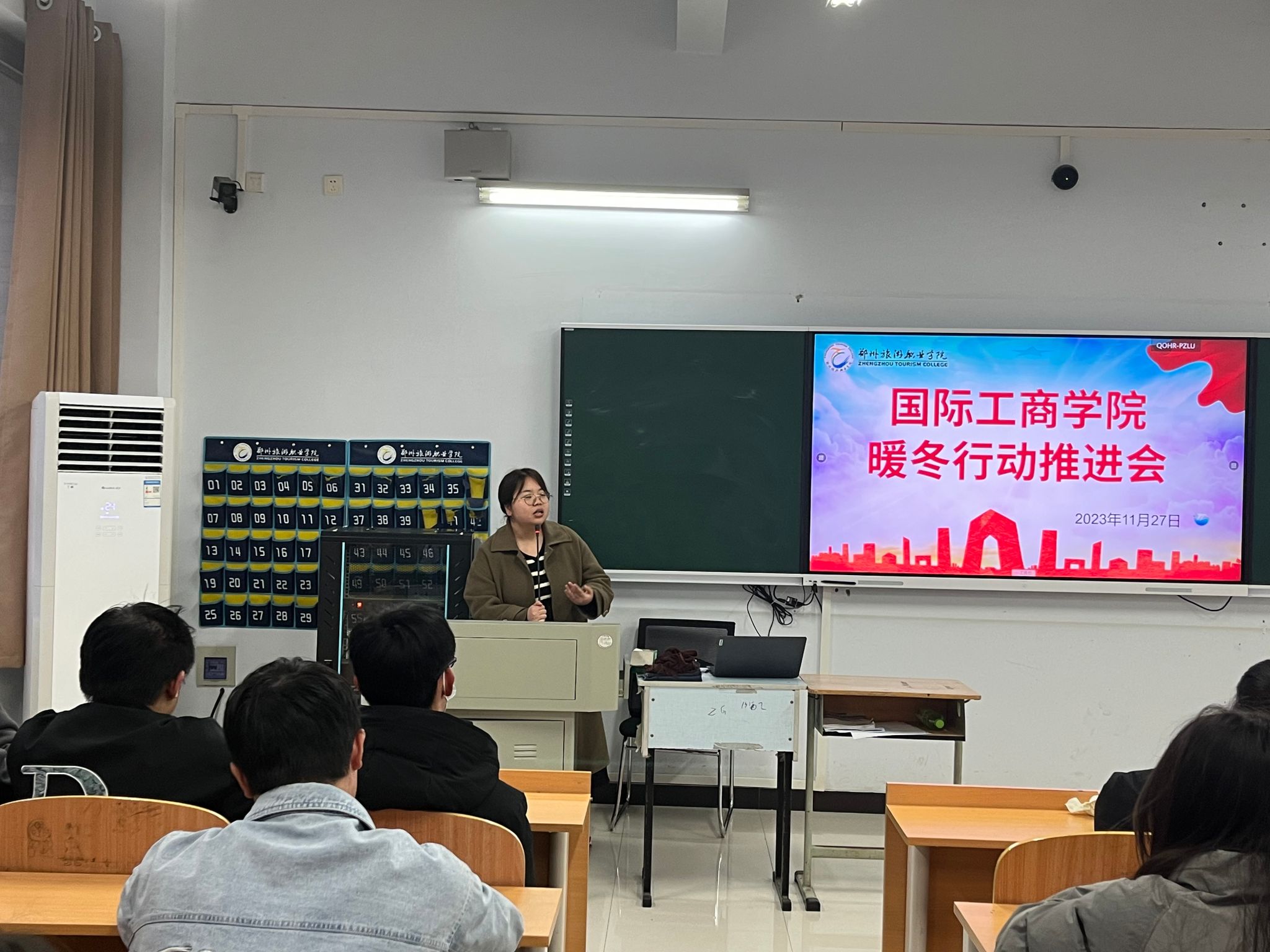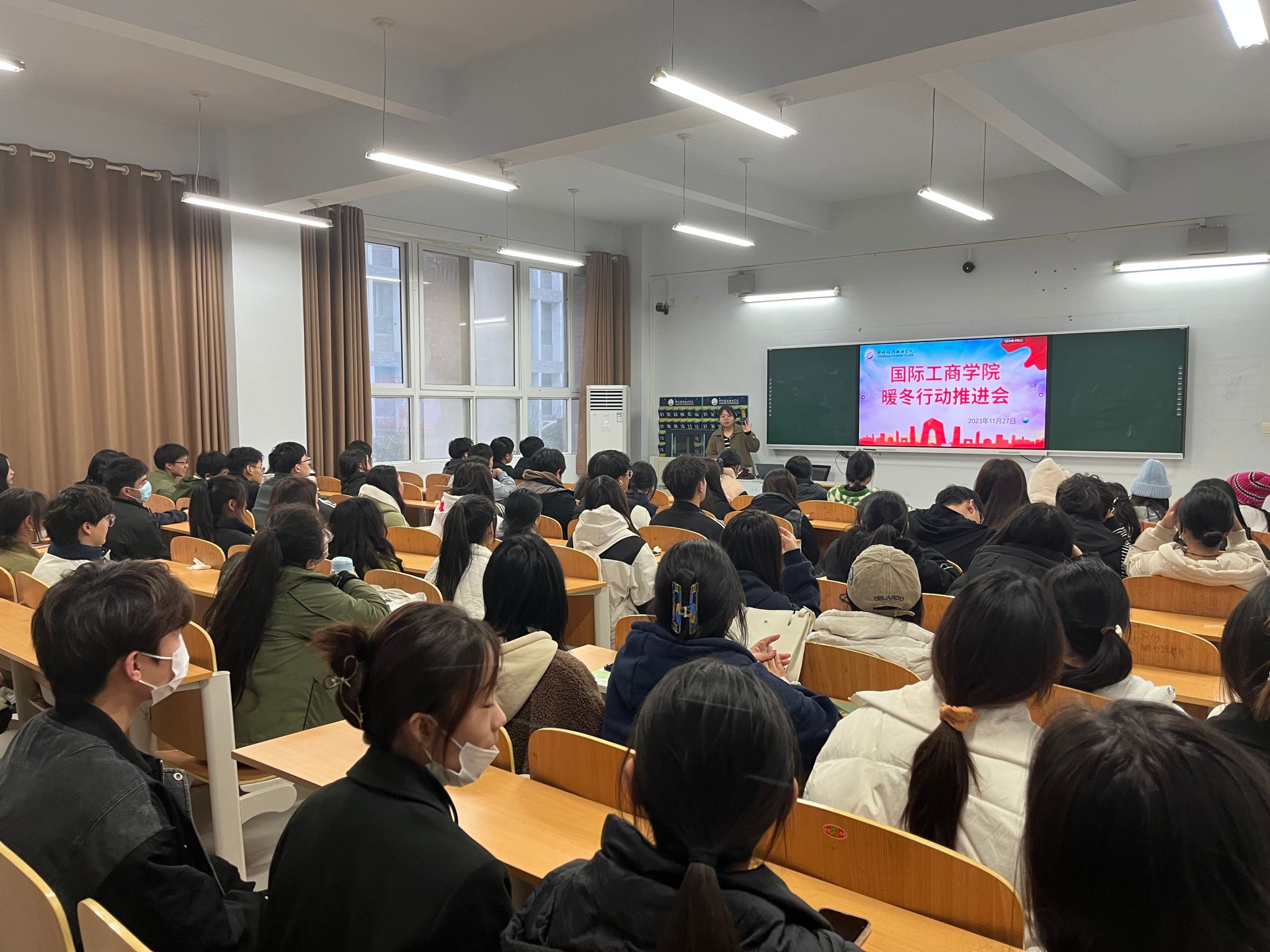 11月27日,国际工商学院于1B203教室召开暖冬行动推进会。会议由学院资助负责老师李冰主持,在校班级特困生参加。