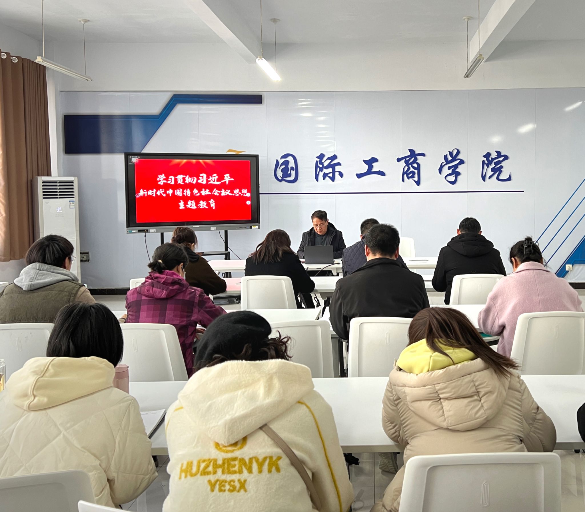 为扎实推进学习贯彻习近平新时代中国特色社会主义思想主题教育走深走实,12月6日,校党委委员、副校长徐永清到国际工商学院开展主题教育理论宣讲。国际工商学院领导班子成员及全体教职工参加理论宣讲。理论宣讲由国际工商学院党总支书记刘兆坤主持。