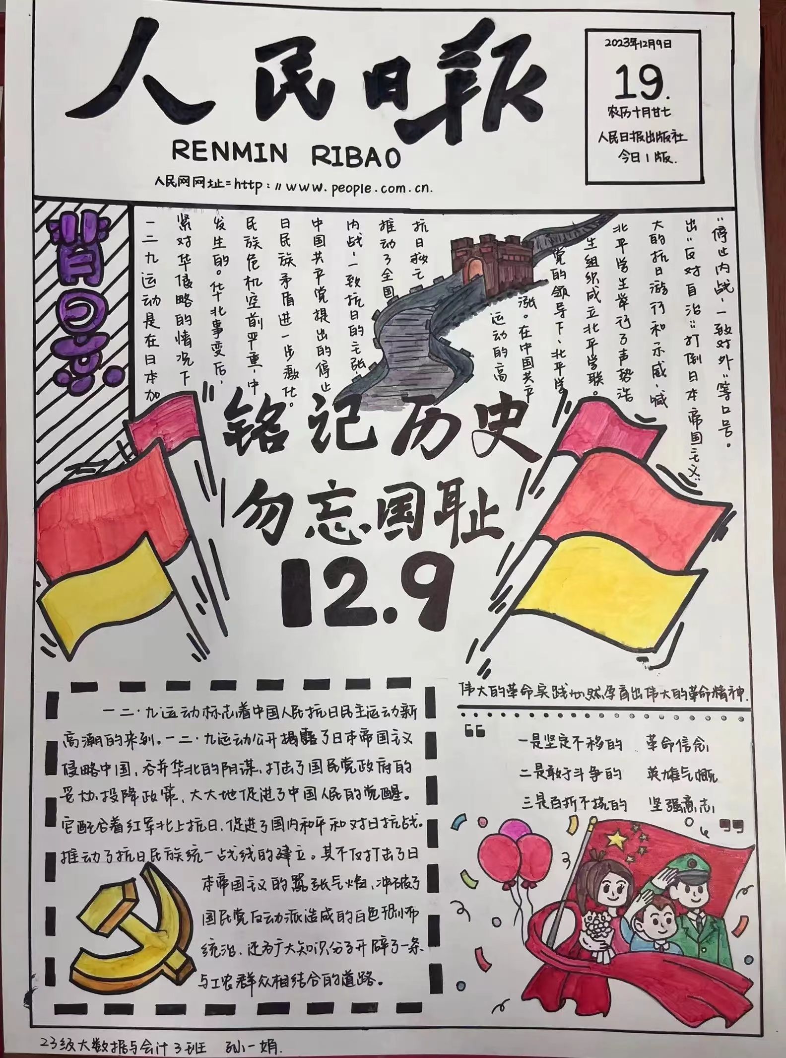 本次活动吸引了全院同学的积极参与。活动中,同学们热情高涨,充分发挥自己的想象力和创作才能,用画笔绘画出自己对“一二·九”运动的理解和认知。画作内容丰富,形式多样,充分展示了同学们对历史的深刻关注和对祖国的热爱之情。