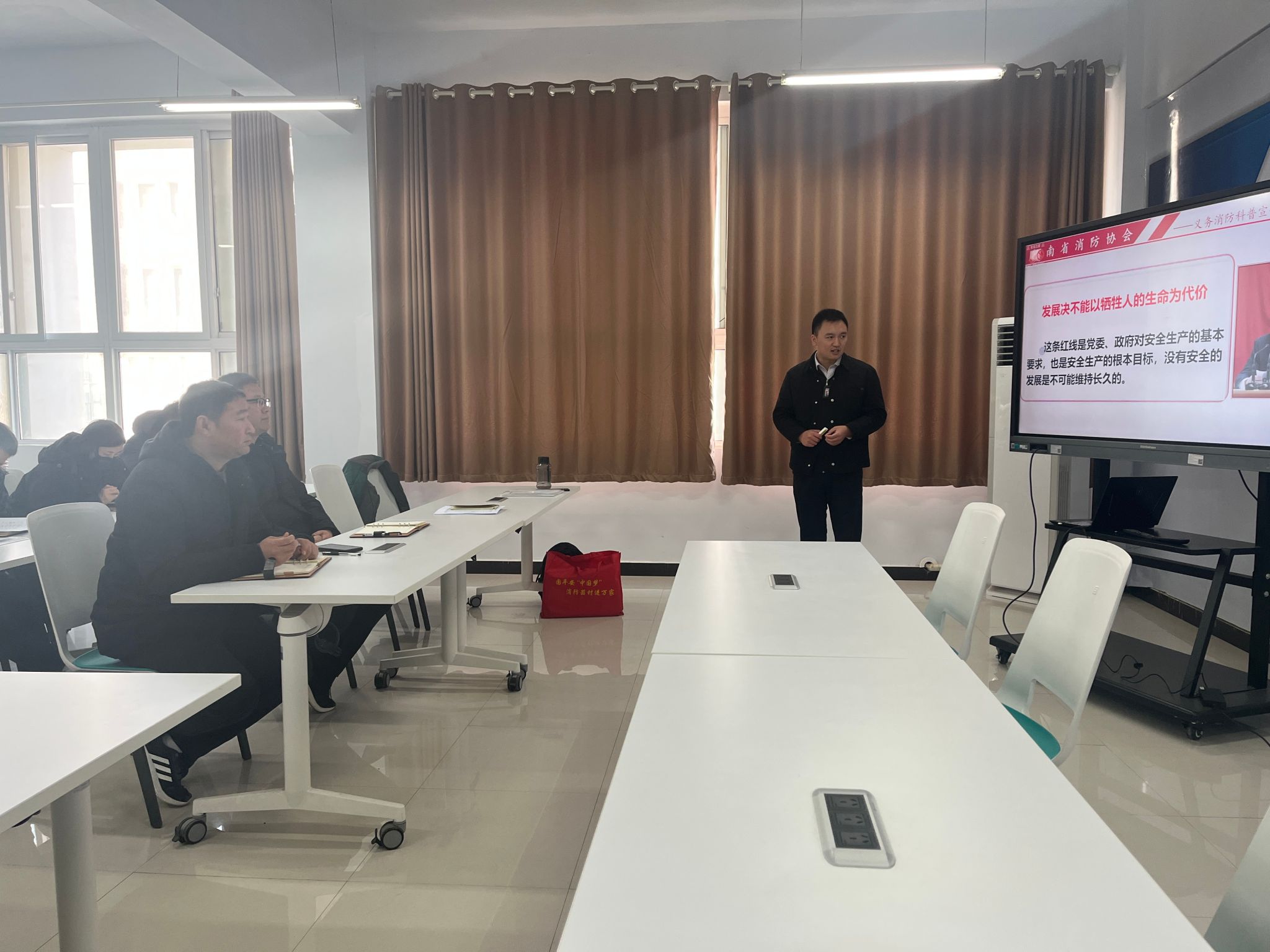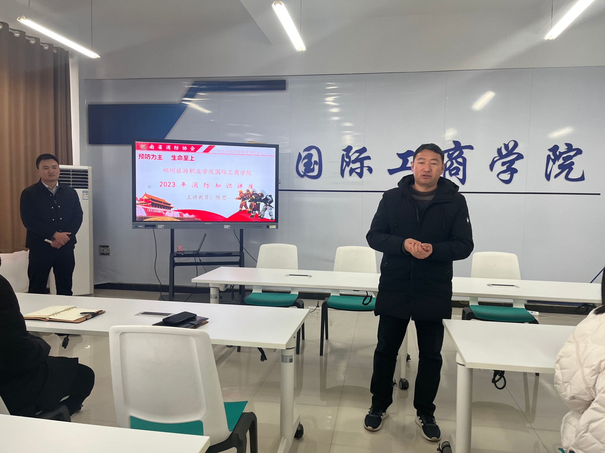 为加强教职工对消防安全知识的了解和掌握,提高消防安全意识,12月20日,国际工商学院在1B304会议室举行2023年消防安全知识讲座。本次讲座特邀请了河南省消防协会的陈思教员来授课,我院党总支书记刘兆坤、院长秦合岗、副院长郭崖以及学院全体教职工参加。