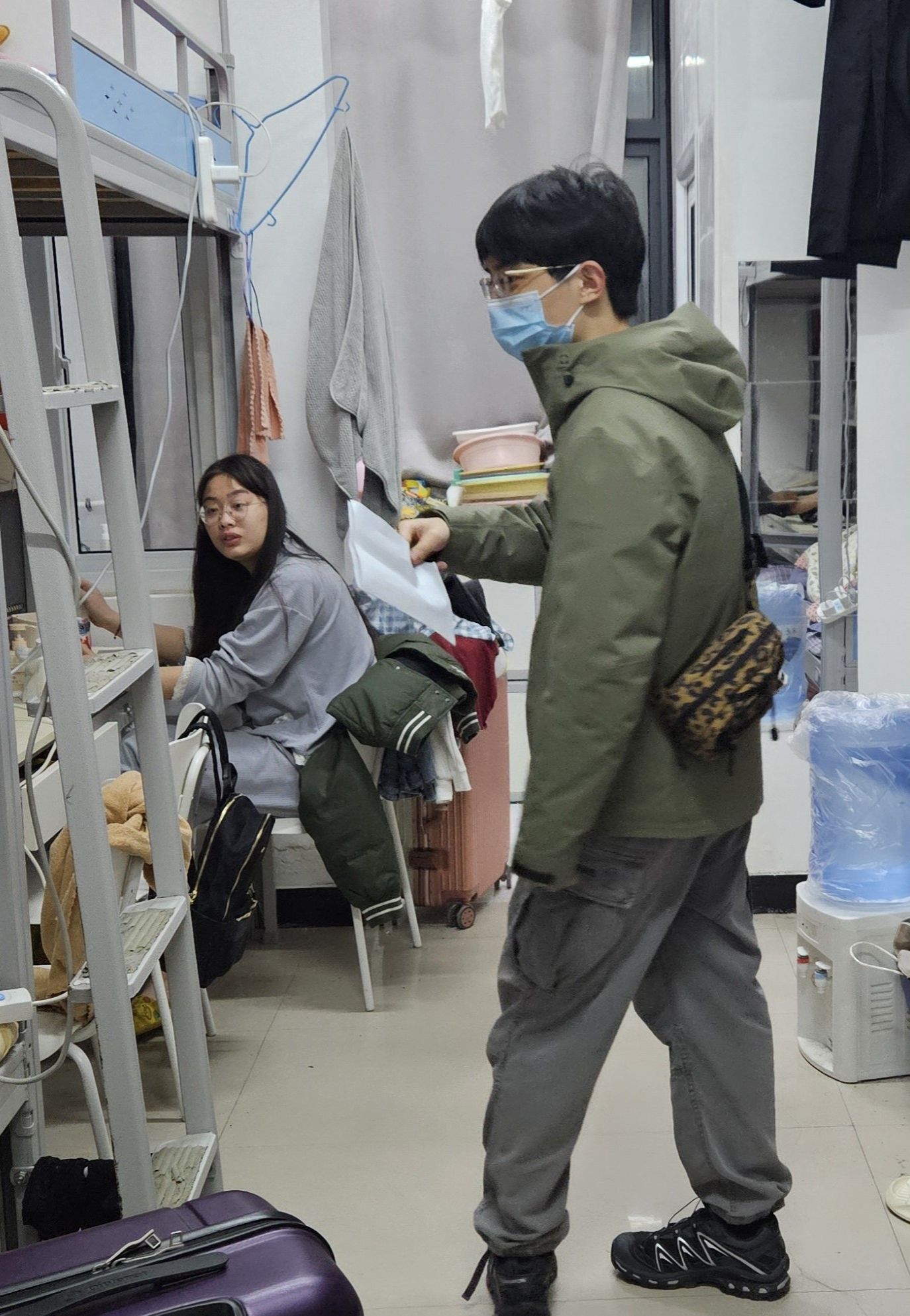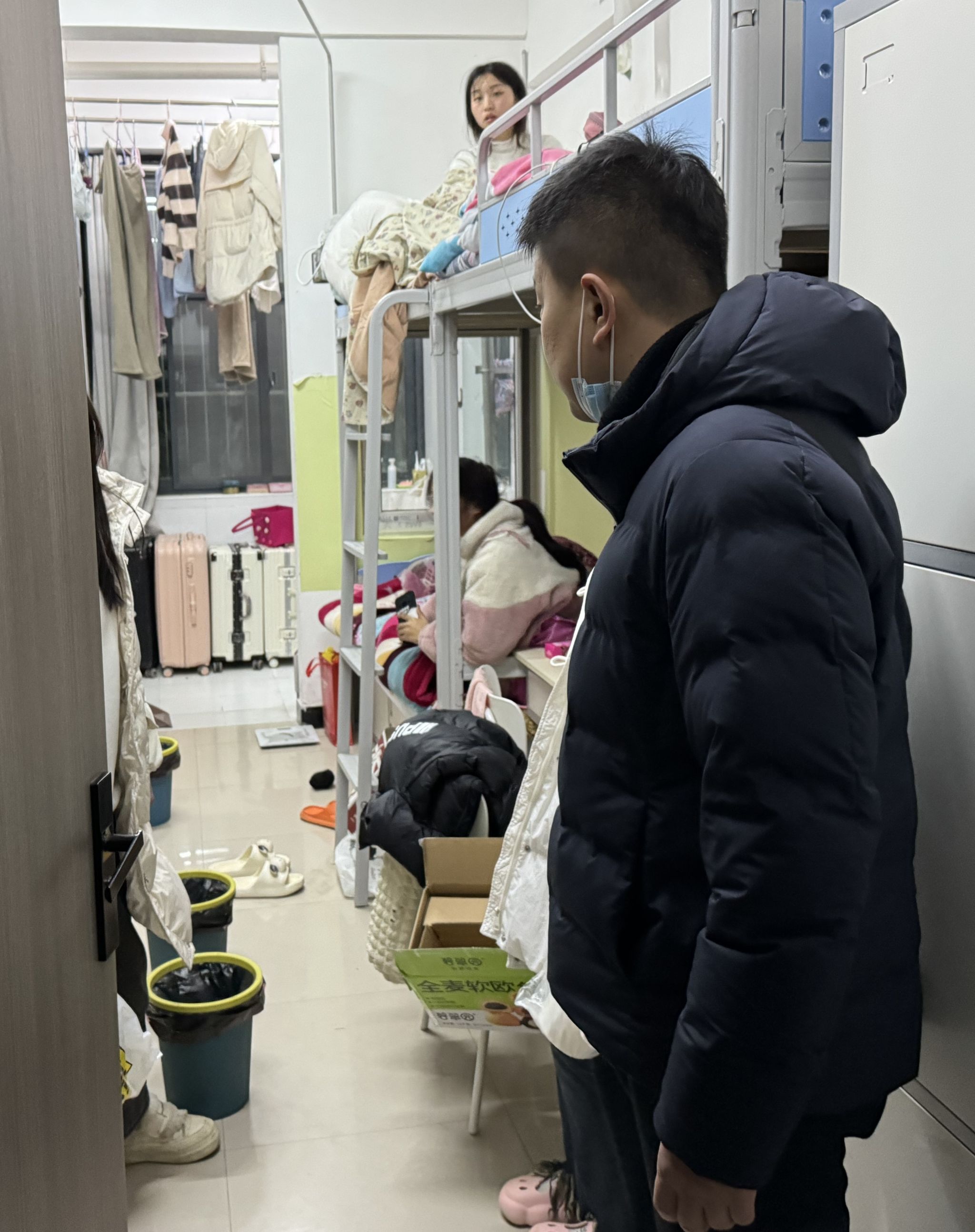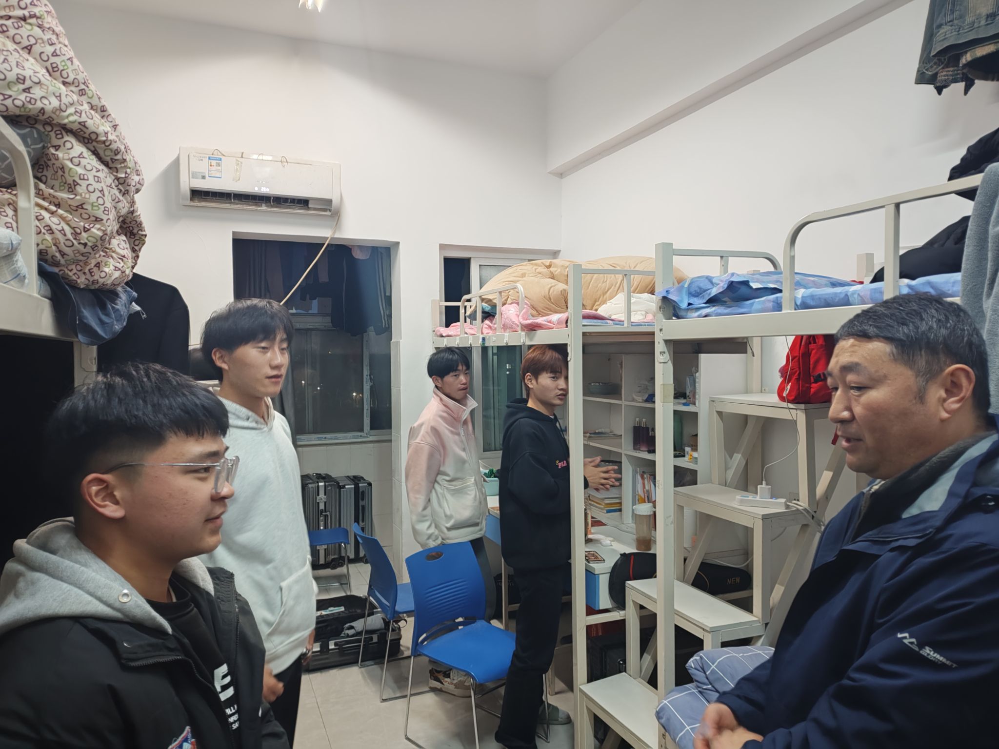 每走访一间宿舍,老师们都细心叮嘱同学们返校后要及时收心,调整生活作息习惯,遵守校内的相关规定,保持宿舍卫生干净整洁,注意宿舍用电安全。同时,老师们特别提醒同学们,校园项目施工中,不要靠近施工现场,要注意校园安全,而且近期天气昼夜温差大,注意防寒保暖,预防感冒疾病。