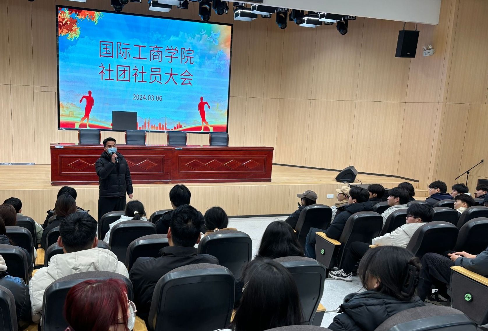 3月6日14:30,国际工商学院在1A教学楼报告厅举行社团社员大会。本次大会由学院团总支书记谢锡莹主持召开,学院乒乓球社、羽毛球社、篮球社、弓箭社、吉他社社长及全体社员参会。