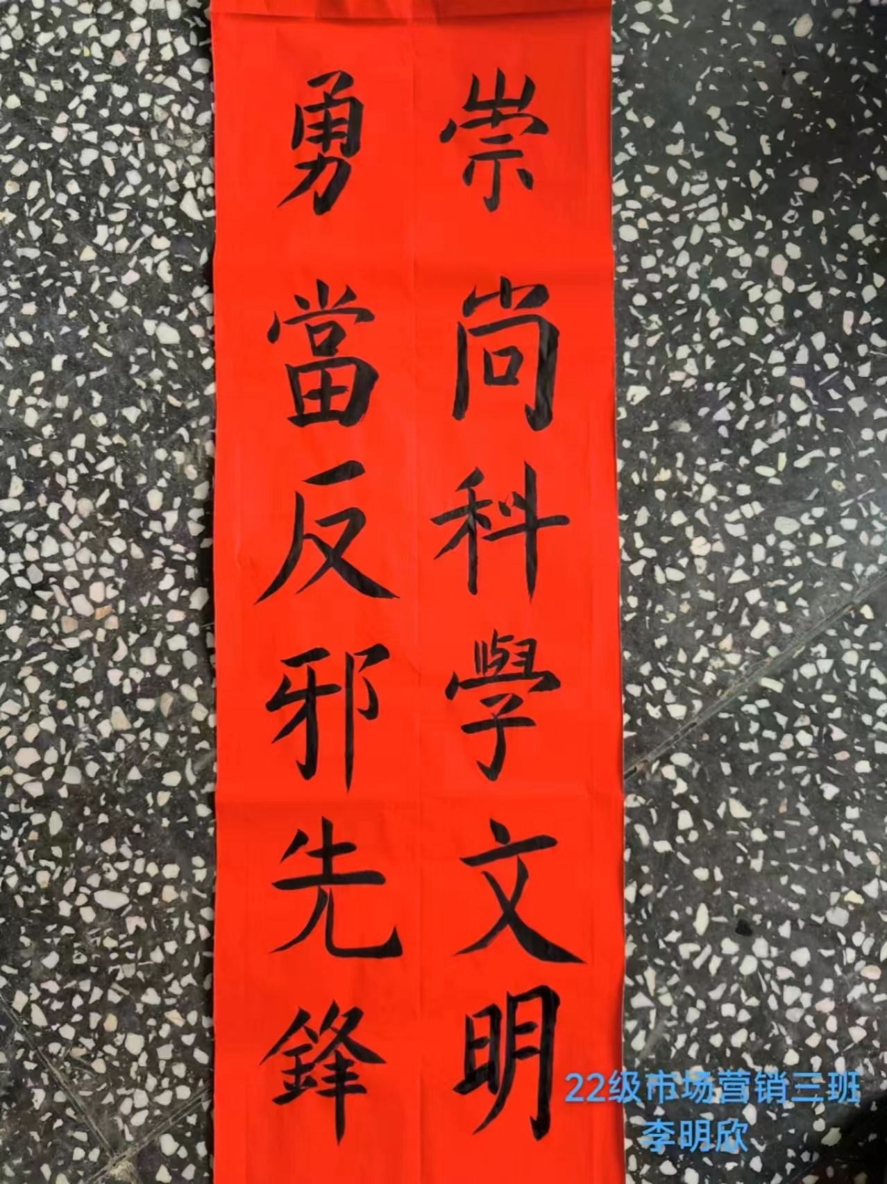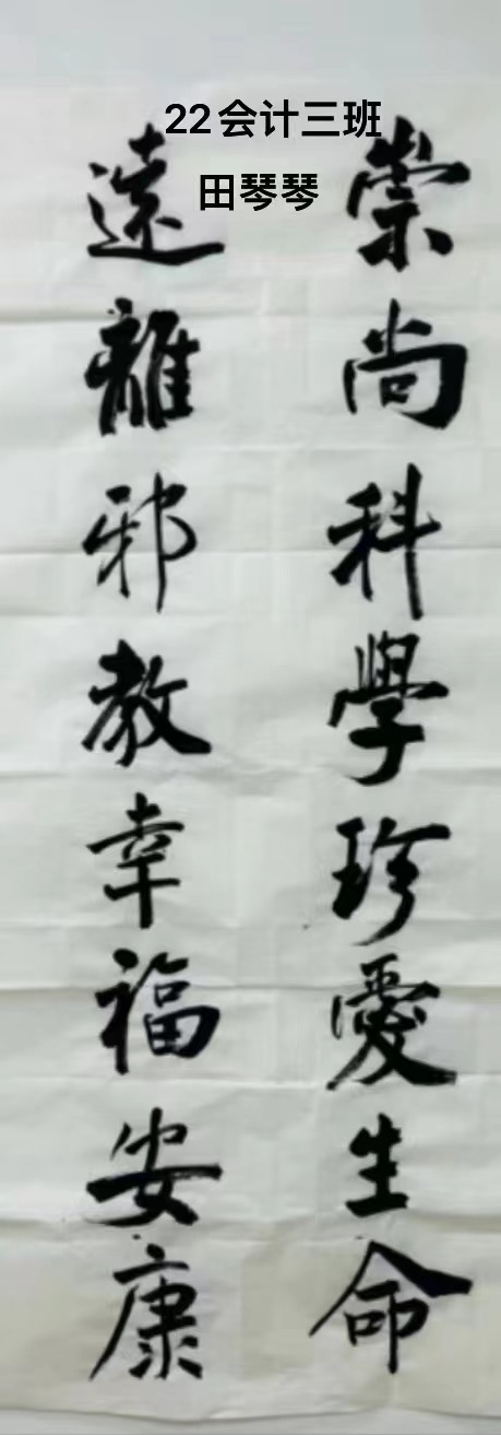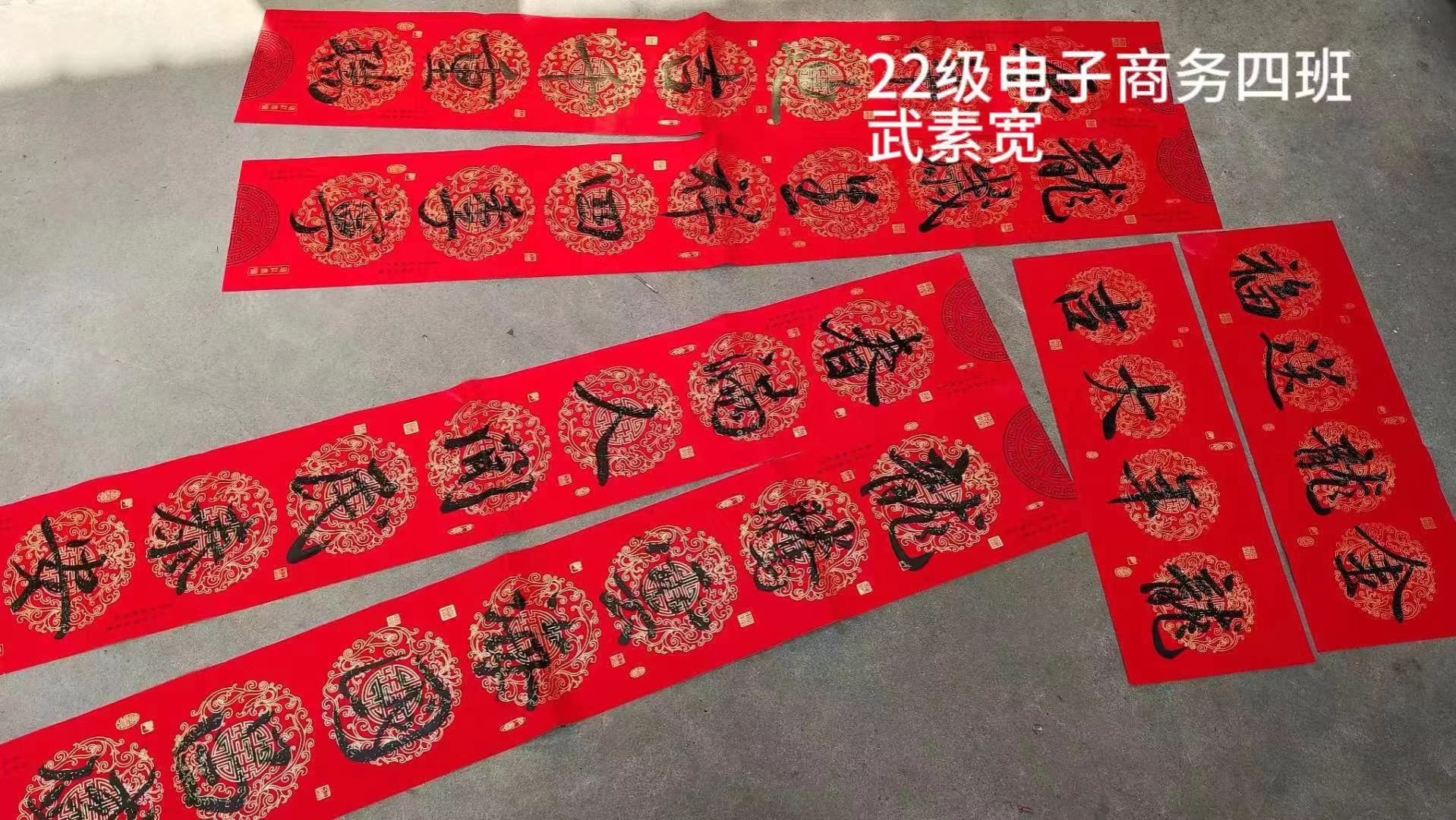 春联,又叫“春贴”、“门对”、“对联”是过年时所贴的红色喜庆元素“年红”中一个种类,是中国特有的文学形式,是人们过年的重要习俗。“千门万户曈曈日,总把新桃换旧符。”贴春联是我们的传统,当人们在自己的家门口贴年红(春联和福字等)的时候,意味着过春节正式拉开序幕。为了让同学们感受中华民族的独特魅力,感受春节的喜庆氛围,国际工商学院对在校生开展了一次书写春联、“福”字、祝福语等一系列有关春节书法文化作品征集,各班同学挥毫泼墨写春联写祝福语,用一幅幅满载祝福的春联、手抄报表达出新一年的美好祝愿,增添喜庆的色彩。、