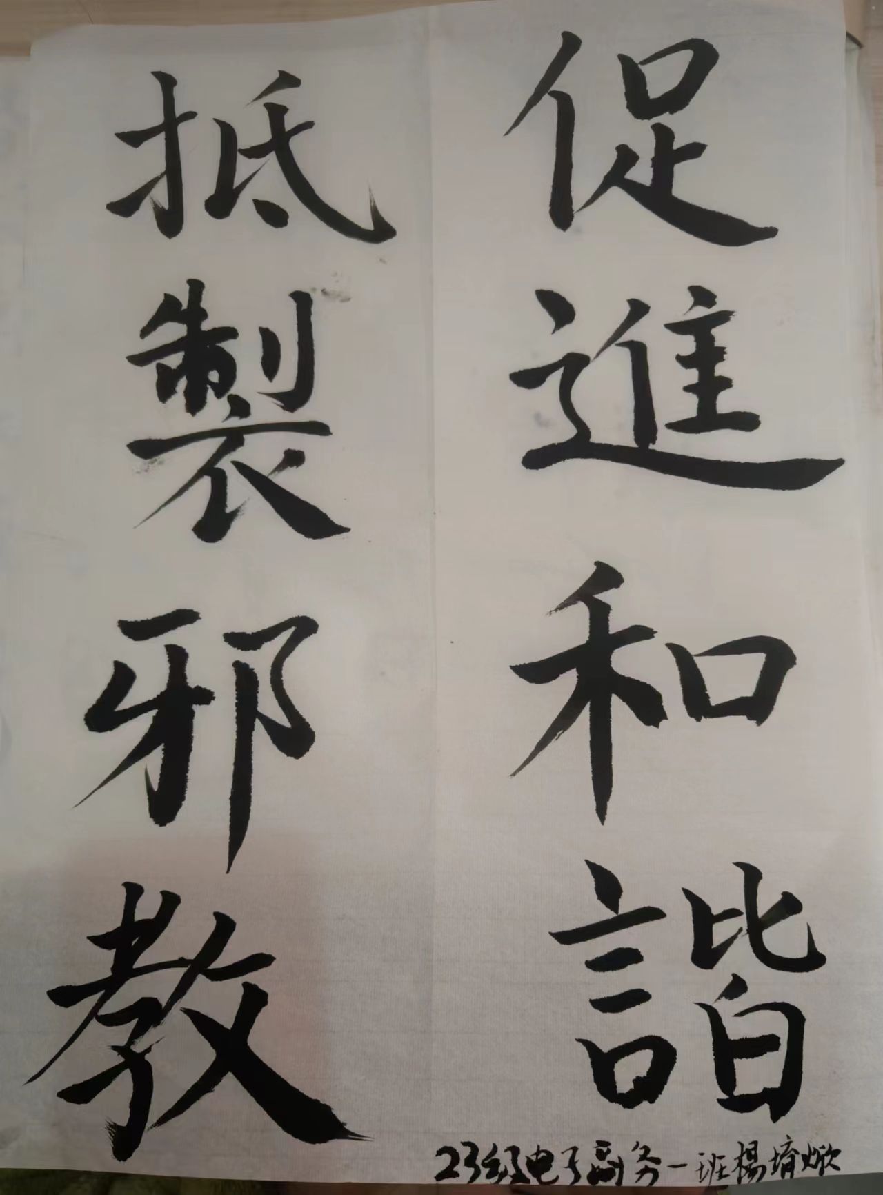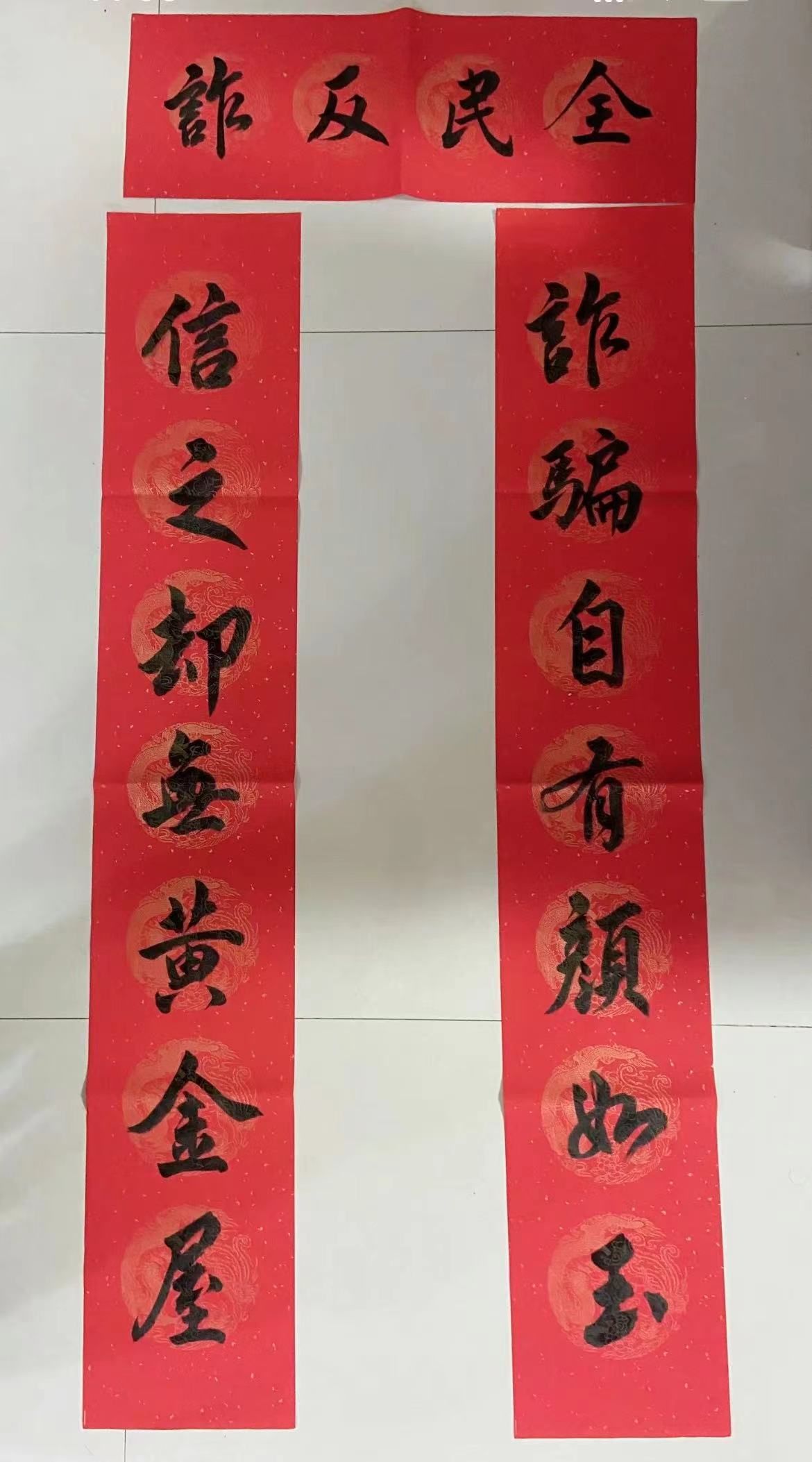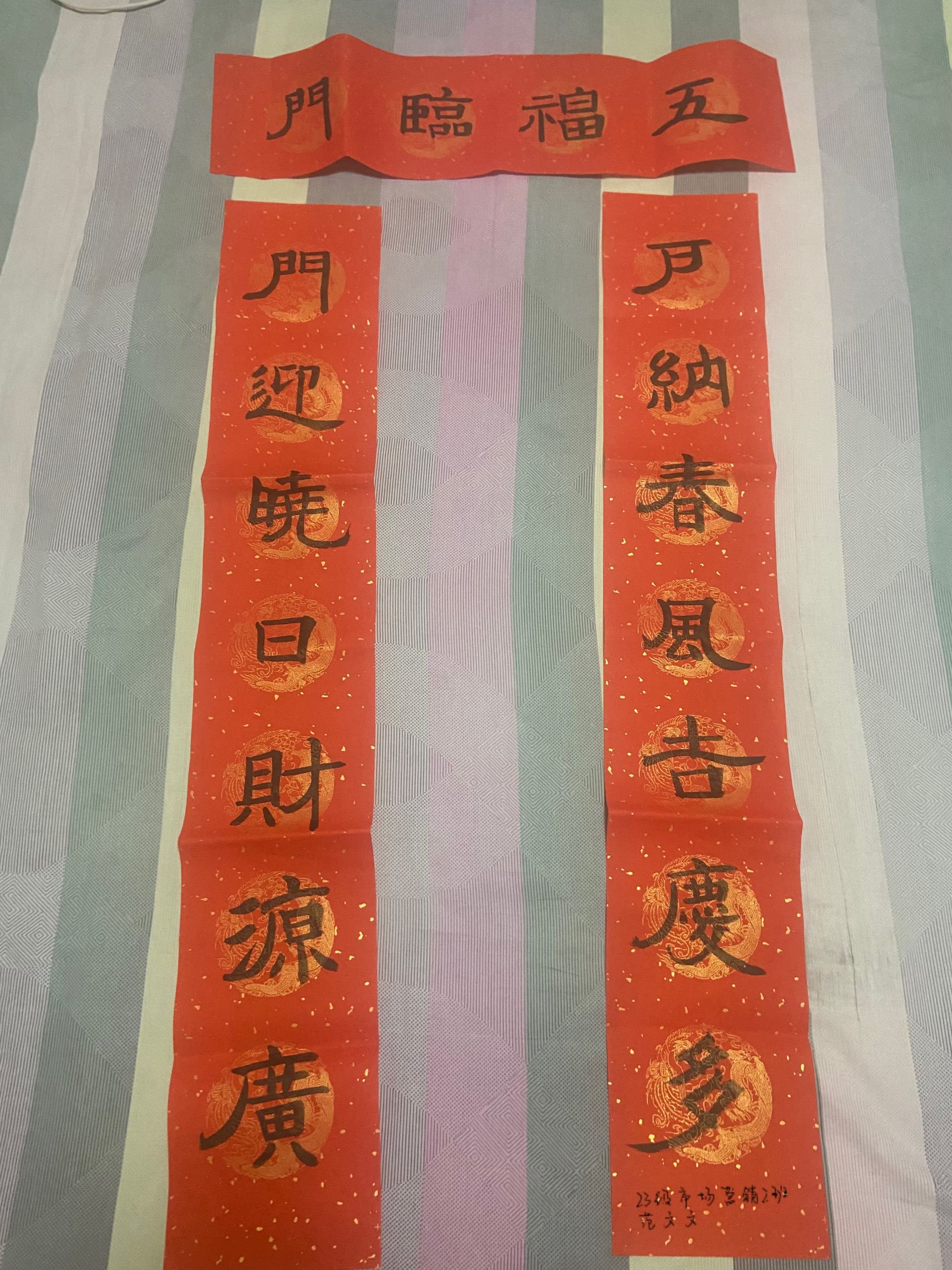 春联,又叫“春贴”、“门对”、“对联”是过年时所贴的红色喜庆元素“年红”中一个种类,是中国特有的文学形式,是人们过年的重要习俗。“千门万户曈曈日,总把新桃换旧符。”贴春联是我们的传统,当人们在自己的家门口贴年红(春联和福字等)的时候,意味着过春节正式拉开序幕。为了让同学们感受中华民族的独特魅力,感受春节的喜庆氛围,国际工商学院对在校生开展了一次书写春联、“福”字、祝福语等一系列有关春节书法文化作品征集,各班同学挥毫泼墨写春联写祝福语,用一幅幅满载祝福的春联、手抄报表达出新一年的美好祝愿,增添喜庆的色彩。、