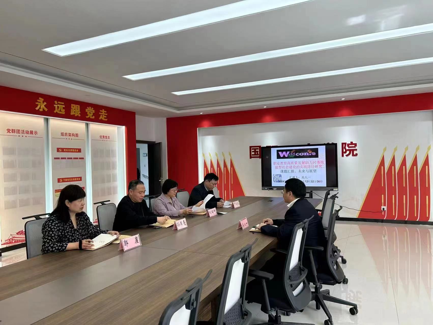 2024年3月29日,pp电子游戏平台网站关八一教授主持的河南省高等教育学会2021年度河南省高等教育研究重点项目《职业教育高质量发展助力河南技能型社会建设的实践路径研究》(2021SXHLX035)在国际工商学院303会议室开展了项目汇报及未来与展望研讨会。项目组成员参加了此次会议。