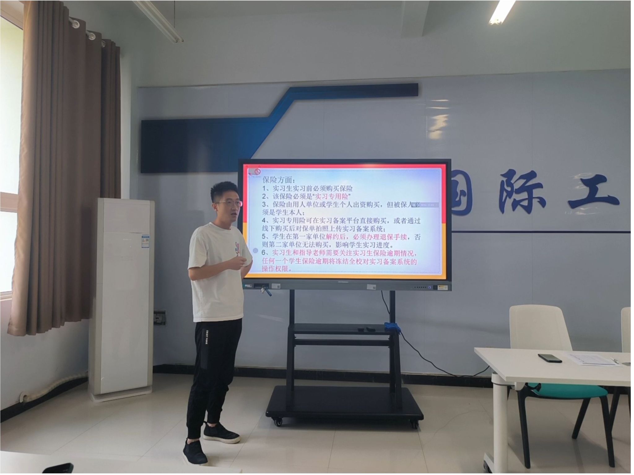 之后,戴鹏老师具体介绍了实习指导老师的工作职责和要求,从实习时长与流程、实习企业分类与选择、实习材料收发、实习系统操作方法等方面对新一届实习要求做出说明,并特别强调了学院对虚假实习的处理办法。最后,班主任老师就实习相关问题进行现场交流。