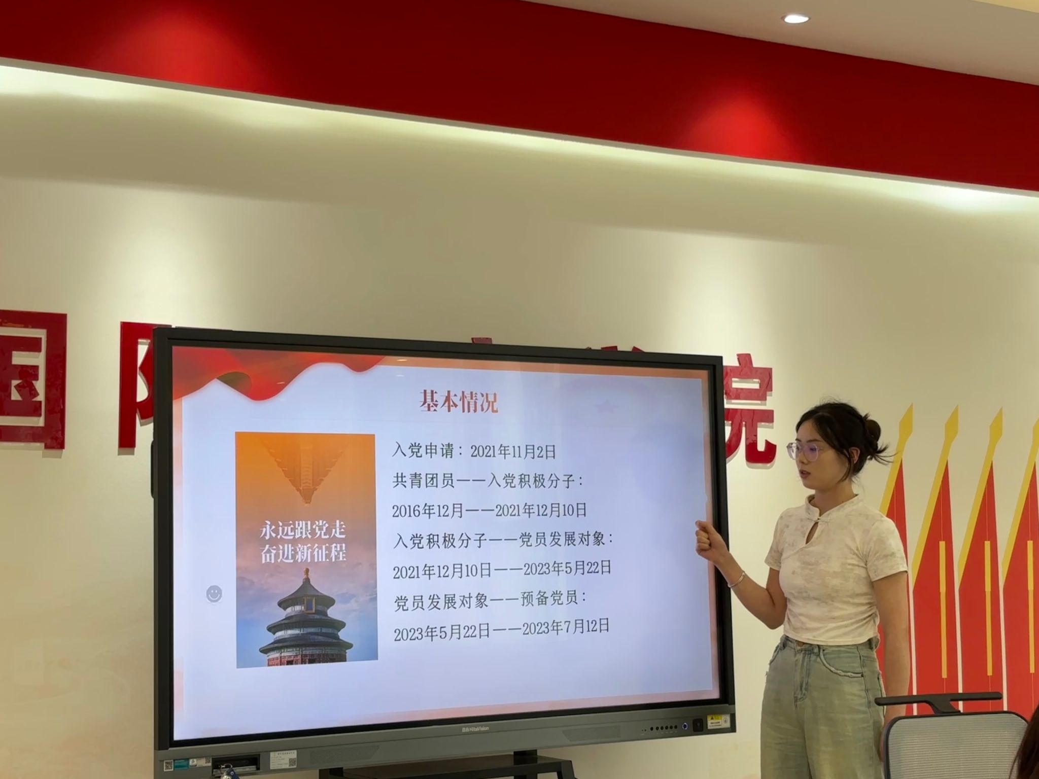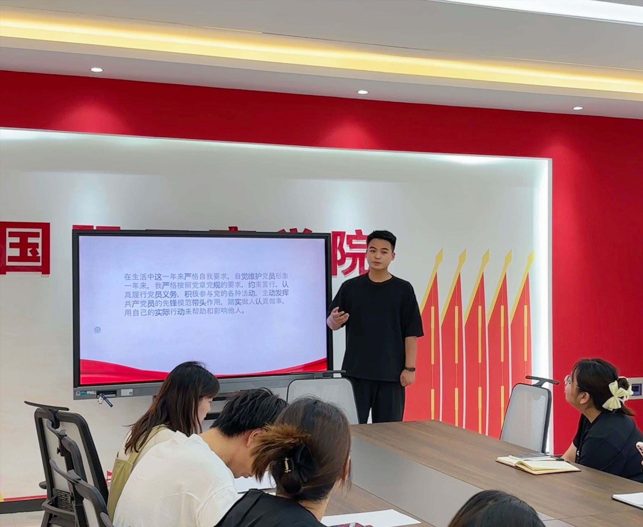 接下来,李书舟等8名预备党员依次郑重地宣读转正申请书,详细汇报了自己预备期间在思想、工作、生活、学习等方面取得的进步和存在的不足,表明转正态度和坚定不移跟党走的决心。