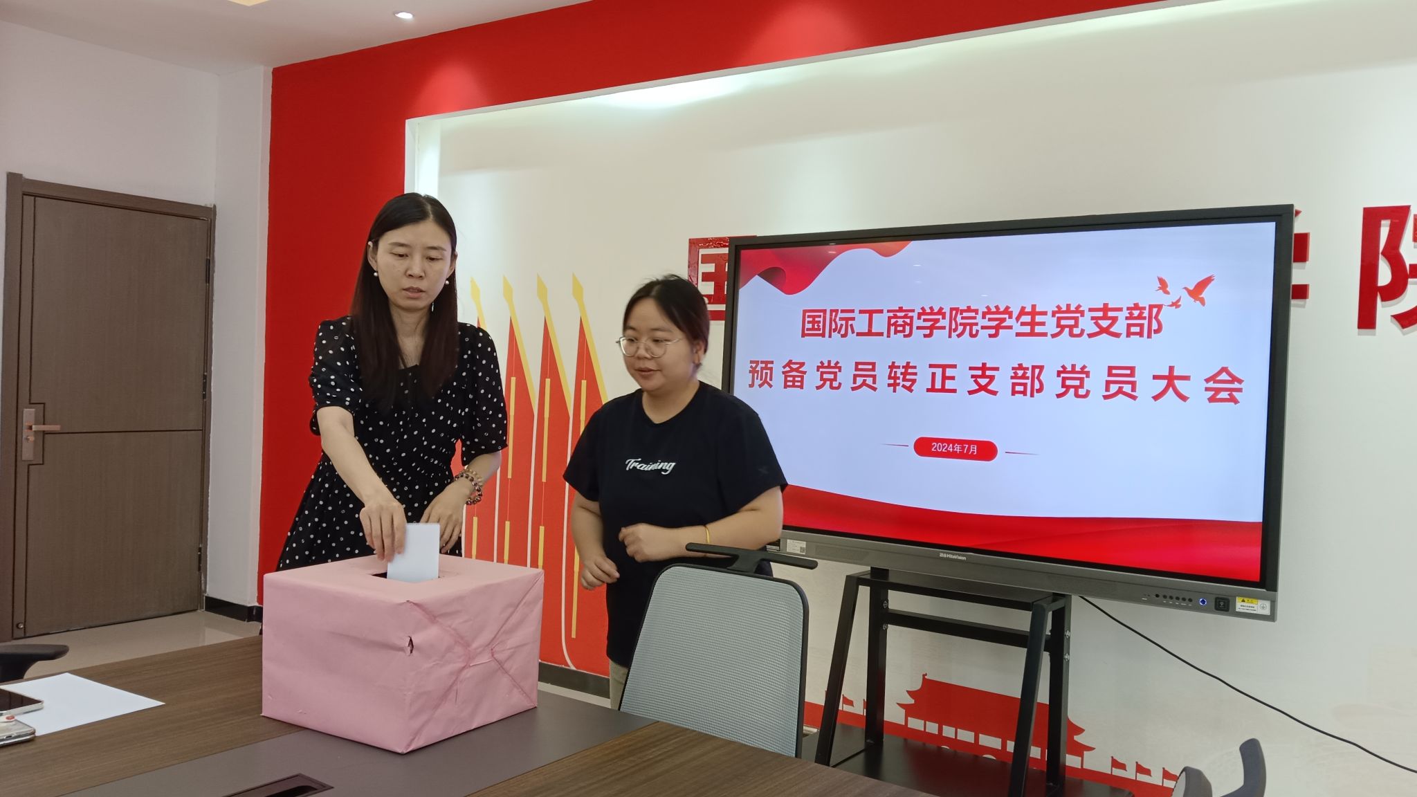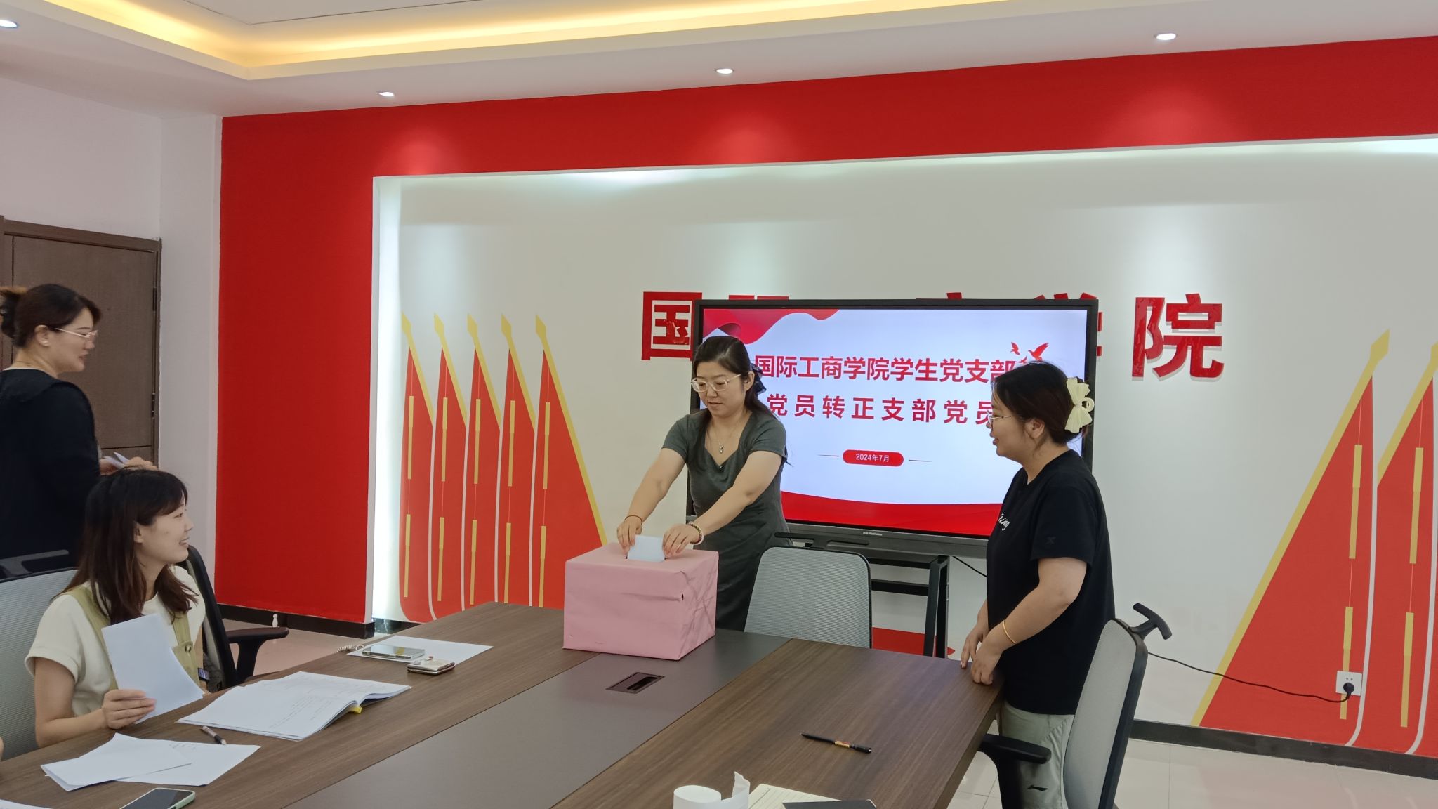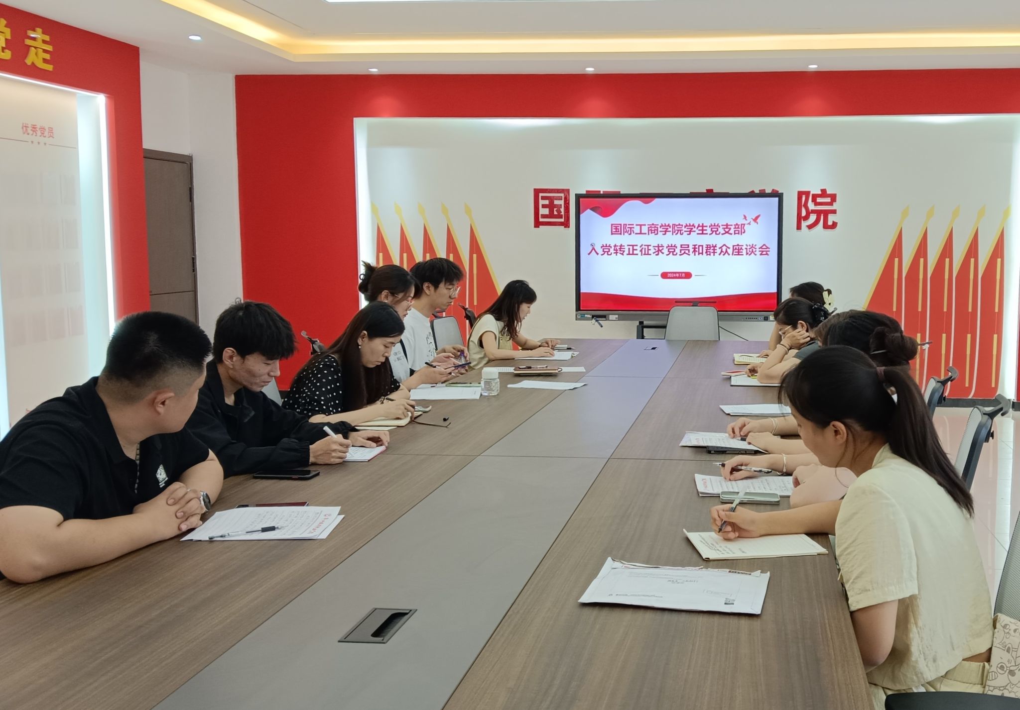 为庆祝中国共产党成立103周年,壮大党员队伍,增强党组织的凝聚力和战斗力。 7月12日,国际工商学院学生党支部在教学楼1B303会议室召开2024年度预备党员转正大会。会议由学生党支部副书记孙文霞主持,学生党支部全体党员、8名预备党员、入党介绍人参加会议。