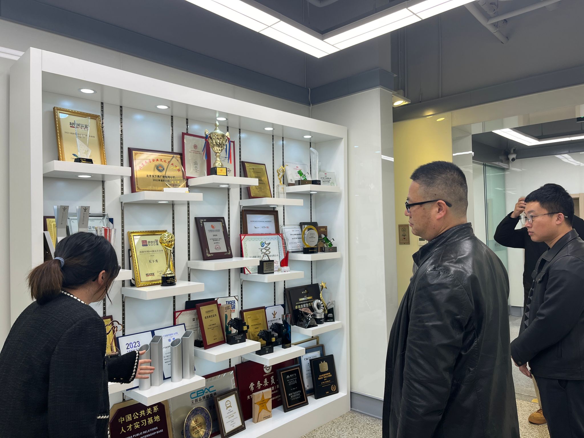 抵达集团园区后,考察团一行受到了天下秀集团教育与认证事业部副总经理王永涛、教育与认证事业部产品总监王林及品牌公关部高级品牌经理李炜的热情接待。在考察团对园区参观的同时,李炜经理详细介绍了园区功能分区、设施配备等基本情况,并从市场分析、产品策划到销售推广等环节深入讲解了企业的运营模式。