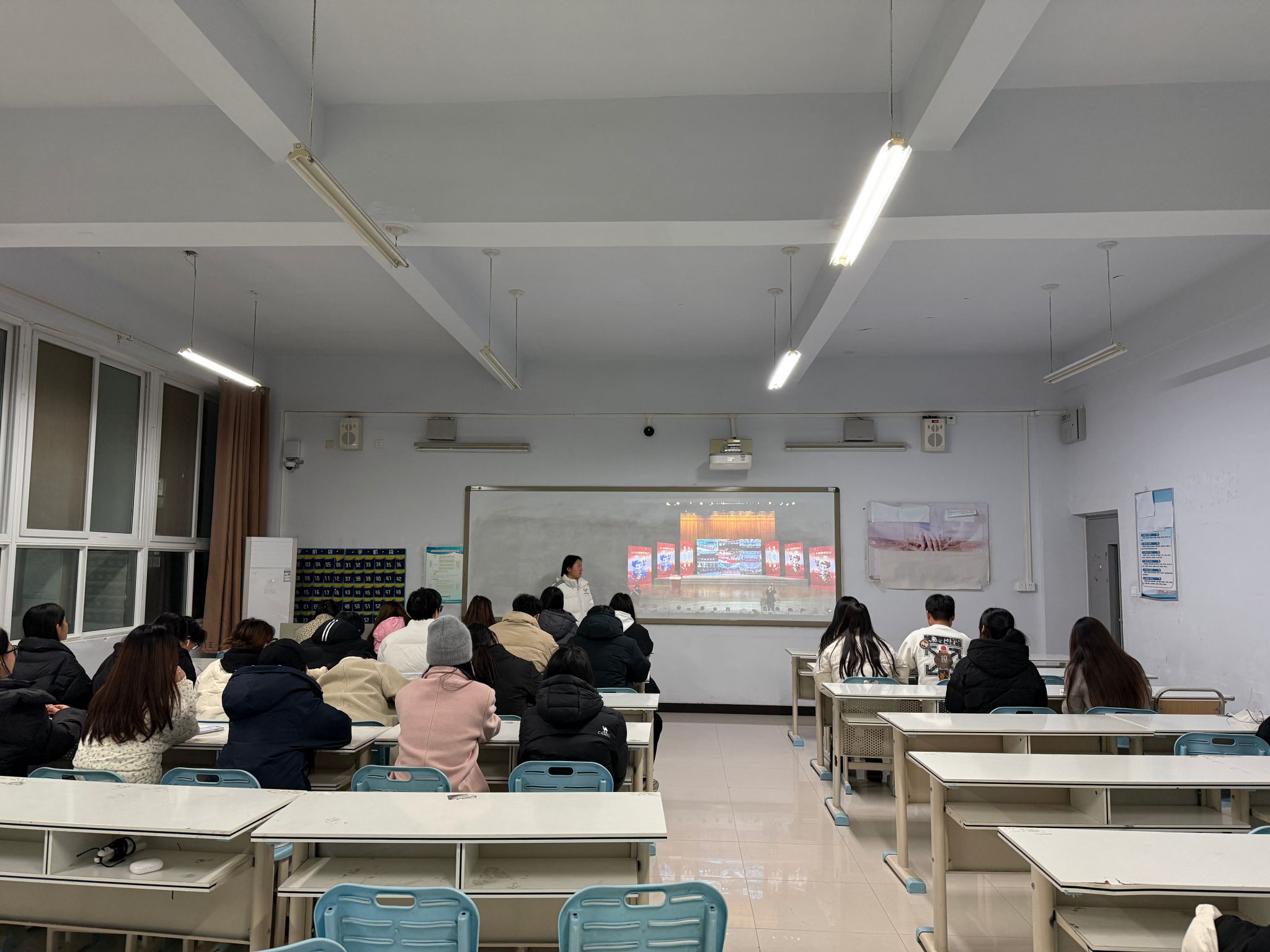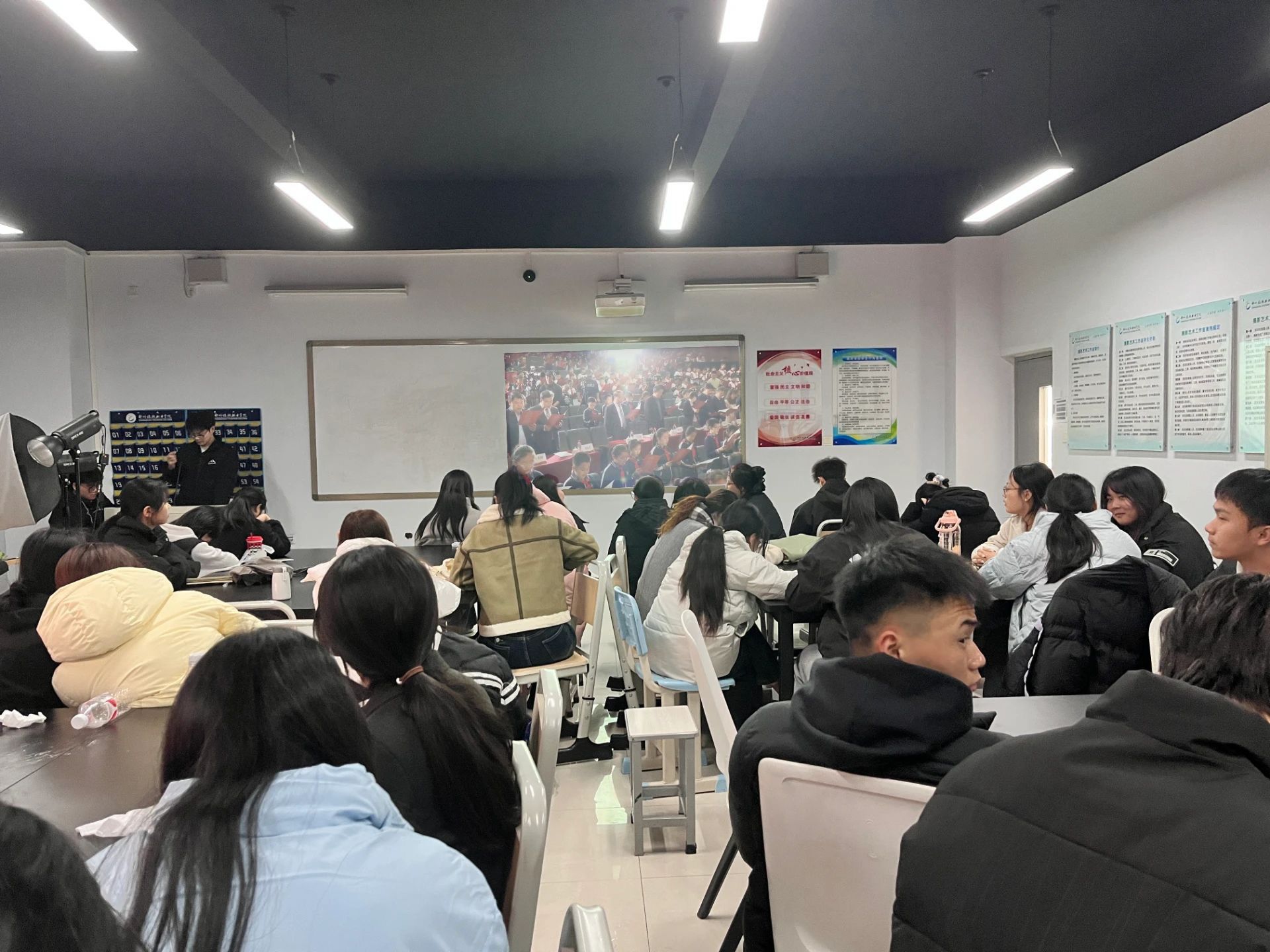于 12 月上旬开展的教育系统“宪法晨读”活动,通过网络视频同步直播的方式,让全省师生能够跨越地域限制,共同参与这一庄严而富有意义的诵读活动。我院高度重视此次活动,紧密结合教学活动安排,组织24级学生通过晚自习时间,23级学生利用课堂间隙时间观看直播并参与其中。