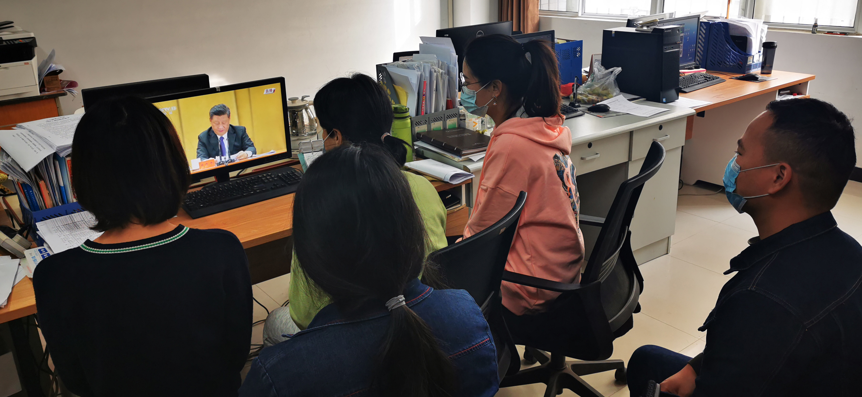 电商办公室观看总书记纪念抗美援朝70周年讲话