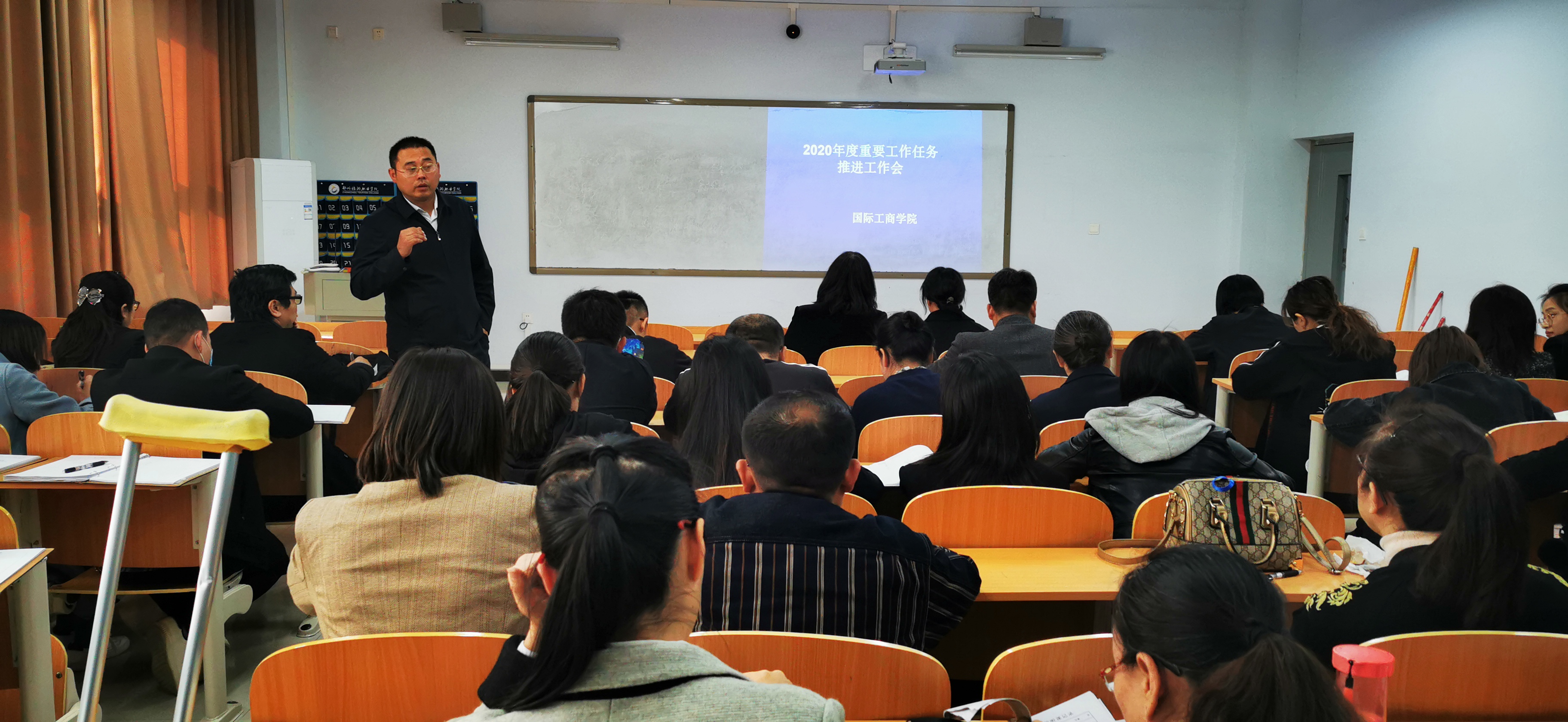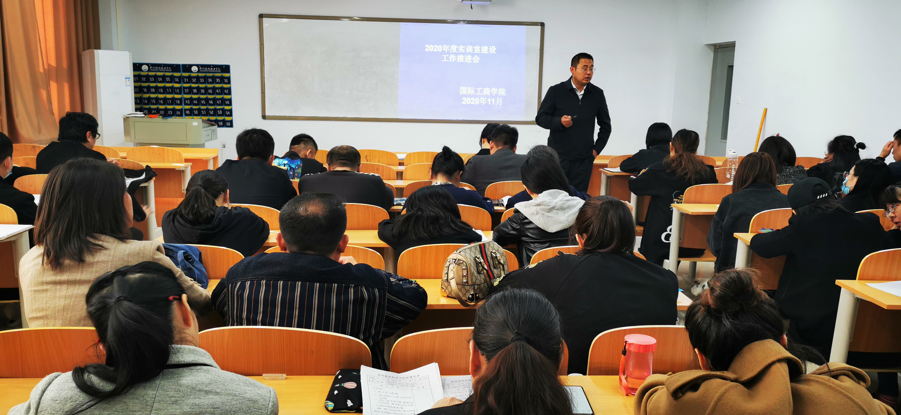 11月11日,国际工商学院在1B203室召开2020年度重要工作任务推进工作会,会议由国际工商学院院长孙权主持,全体教职工参加会议。