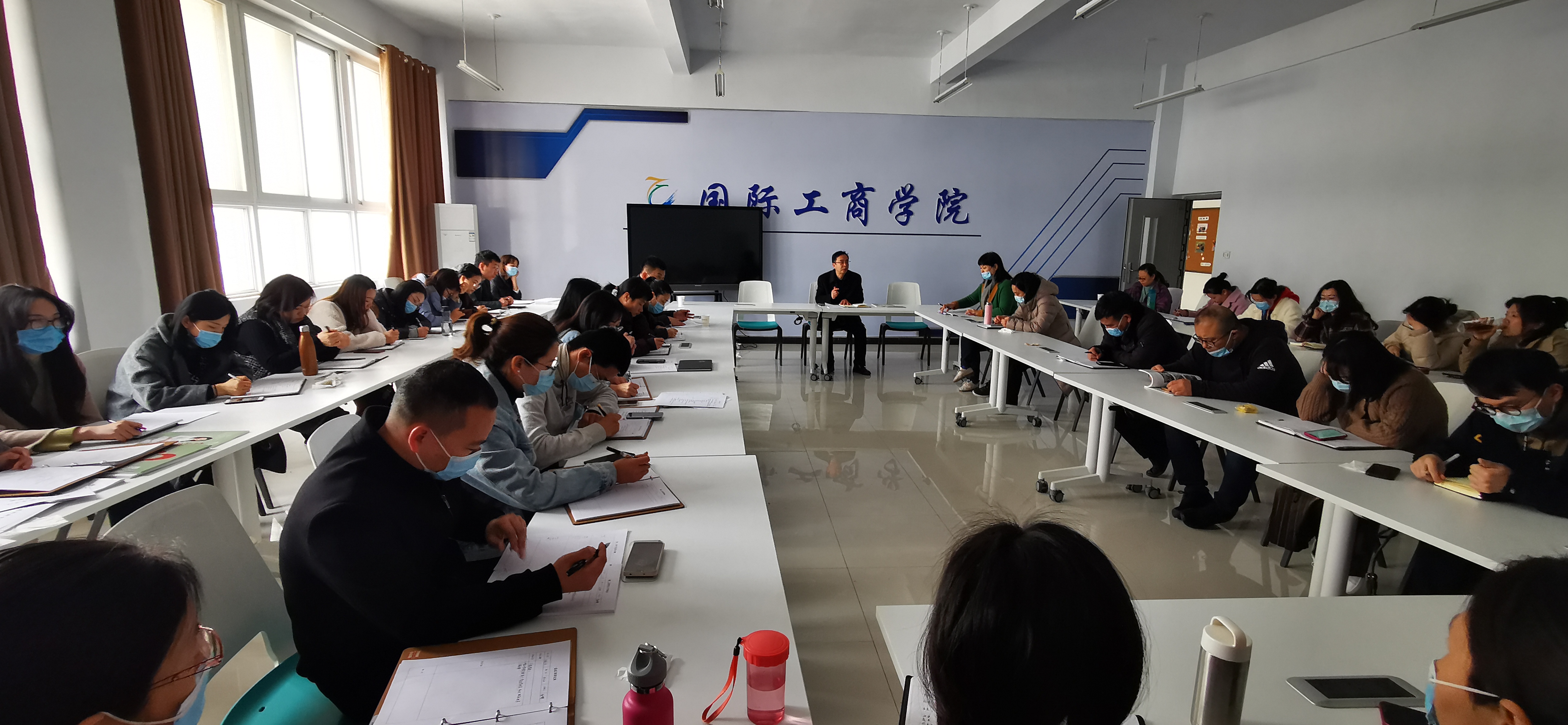 3月17日,国际工商学院在1B304召开每周全体工作例会,会议由国际工商学院党总支书记张鹏主持,国际工商学院副院长郭崖、全体教职工参加会议。