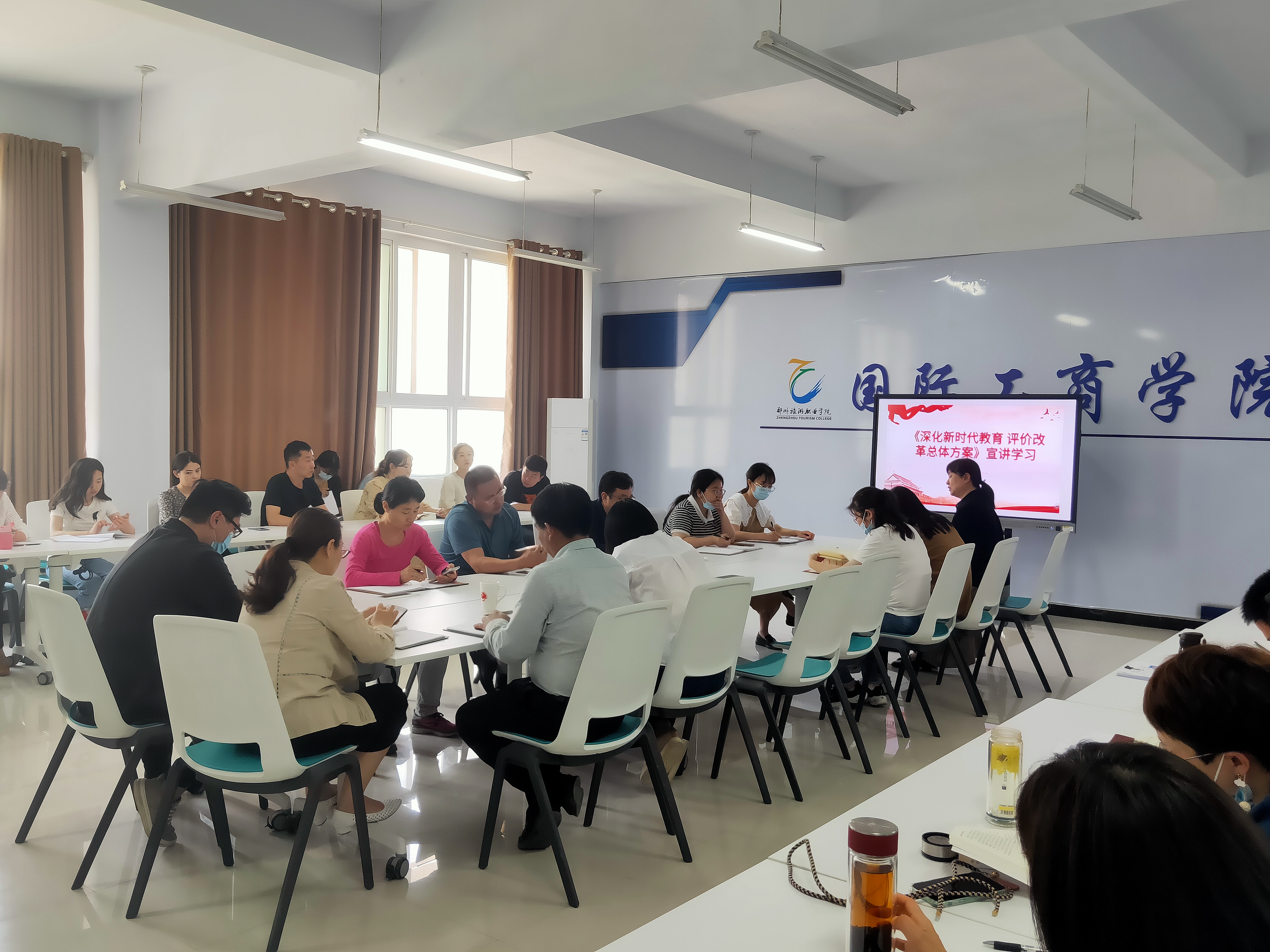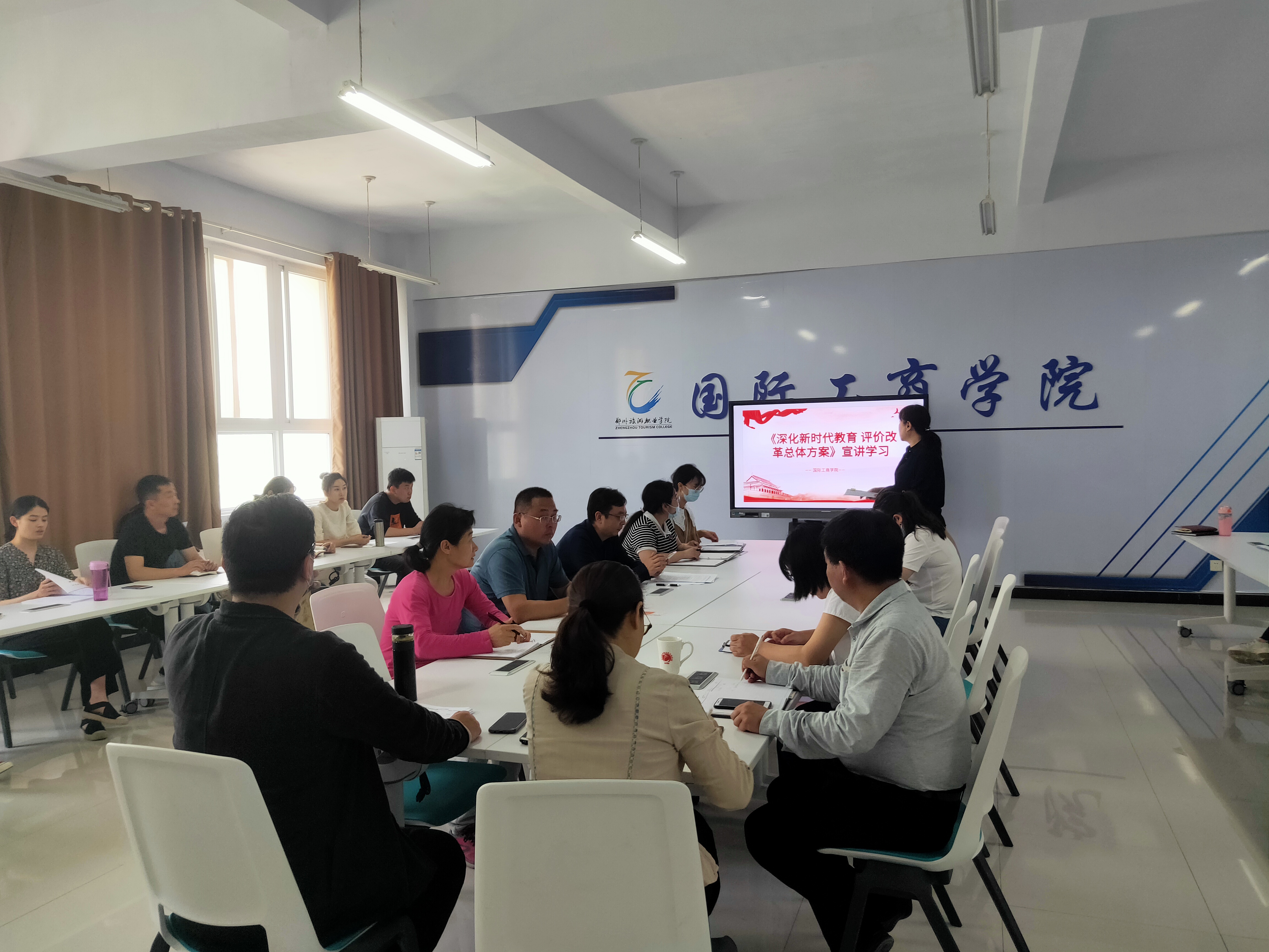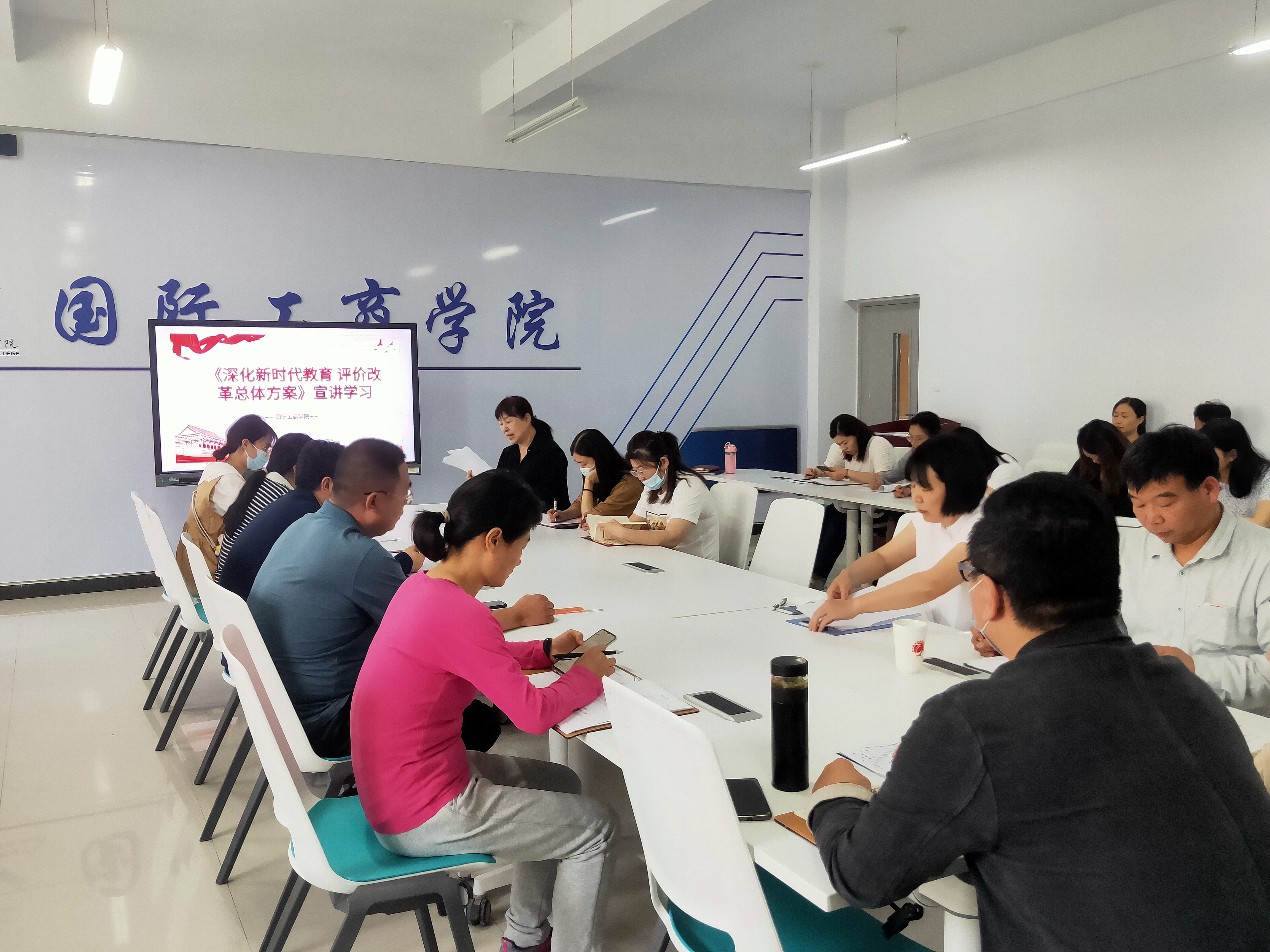 5月12日,国际工商学院在1B教学楼304会议室召开《深化新时代教育评价改革总体方案》宣讲学习会,会议由国际工商学院副院长郭崖主持,院长孙权、党总支书记张鹏、团总支书记谢锡莹及教职工参会。