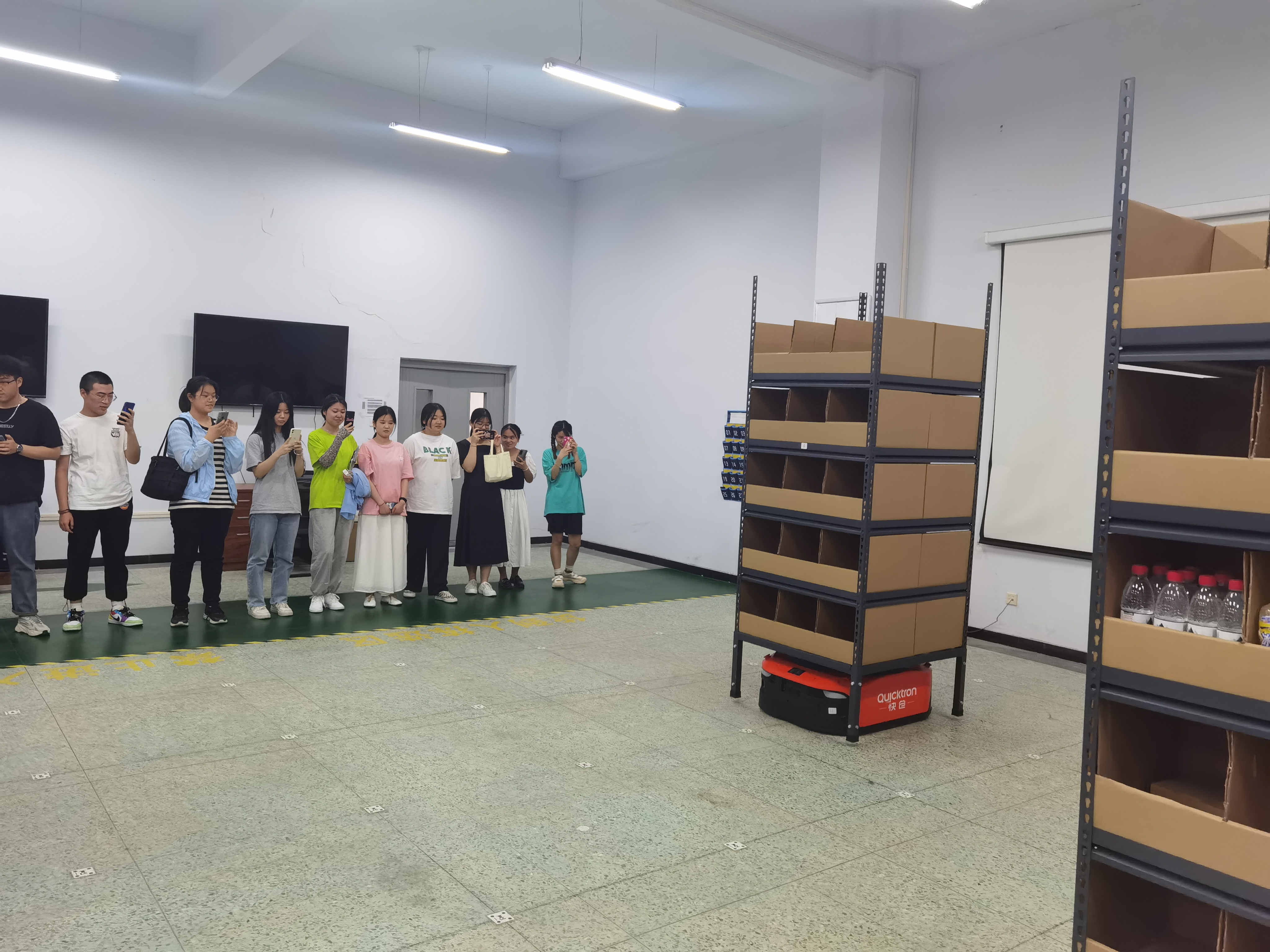 参观过程中,休闲服务与管理专业学生对货到人拣选系统表现出较大的兴趣。