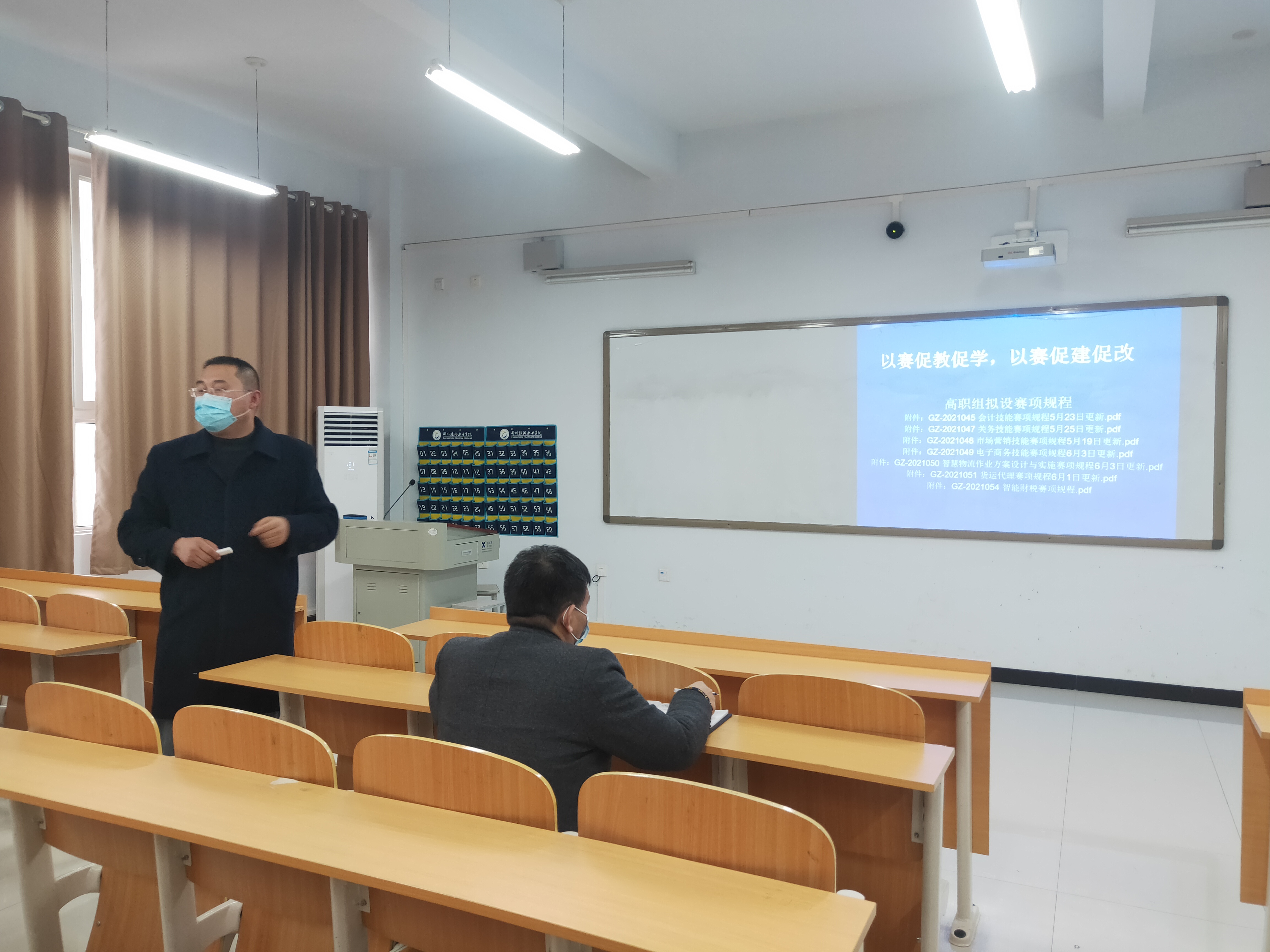 会上,孙权首先回顾了本年度学院各专业的参赛情况,对参赛取得的成果进行肯定与赞赏,并总结以往参赛的经验与教训。随后,孙权向在座教师传达了《教育部 河南省人民政府关于深化职业教育改革推进技能社会建设的意见》文件精神,解读其重点内容,并对下一年度的专业竞赛工作做出指示与安排。