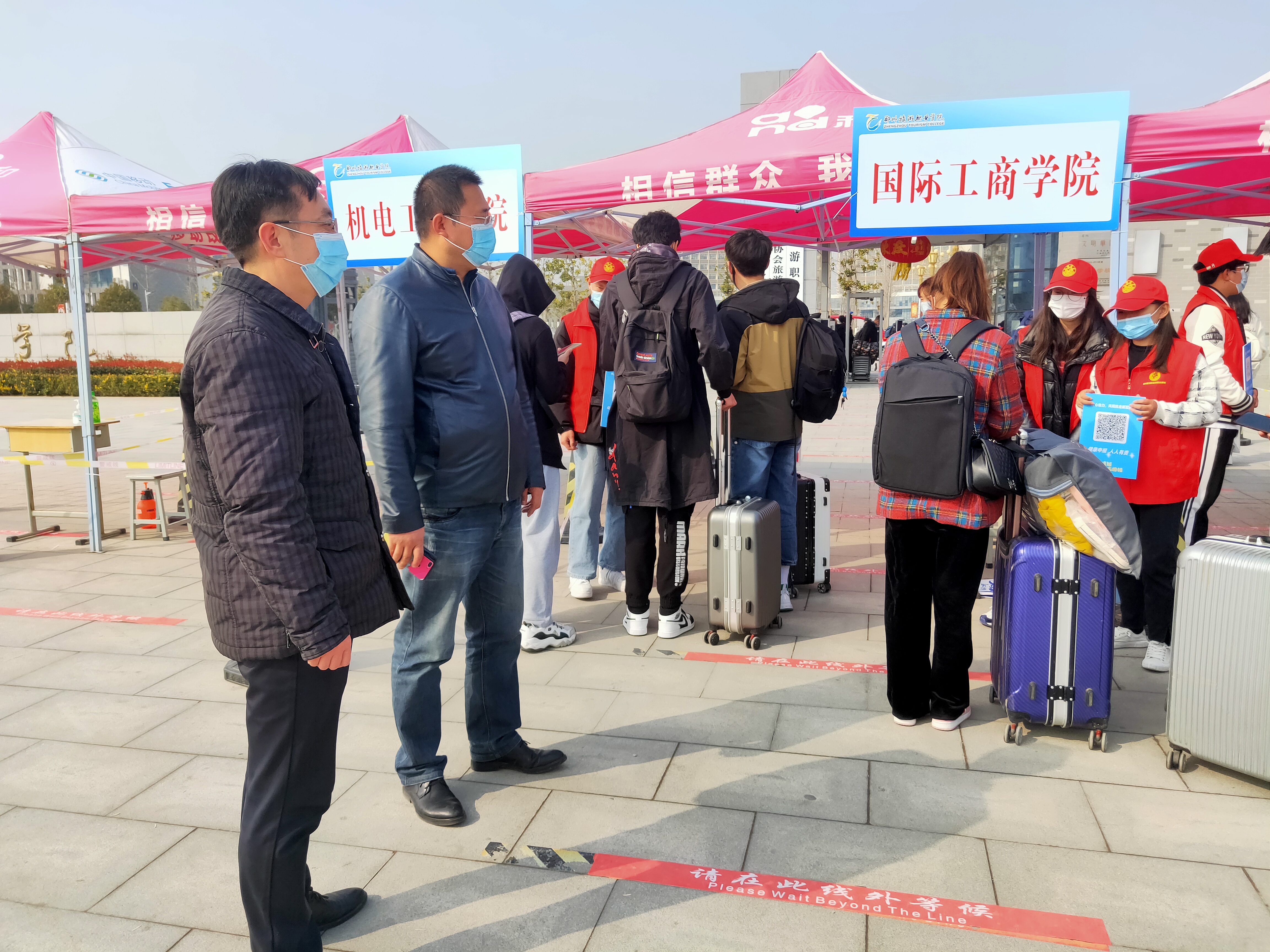 在国际工商学院党总支书记张鹏的带领下,全体辅导员班主任老师有条不紊的组织学生们完成了返校工作。按照防疫要求,安排辅导员和学生干部分别在校门口、教学楼门口设置防疫二维码检查和体温监测。随后分两批由各班主任主持召开新学期第一次班会,和同学们进一步强调新学期的任务和要求。