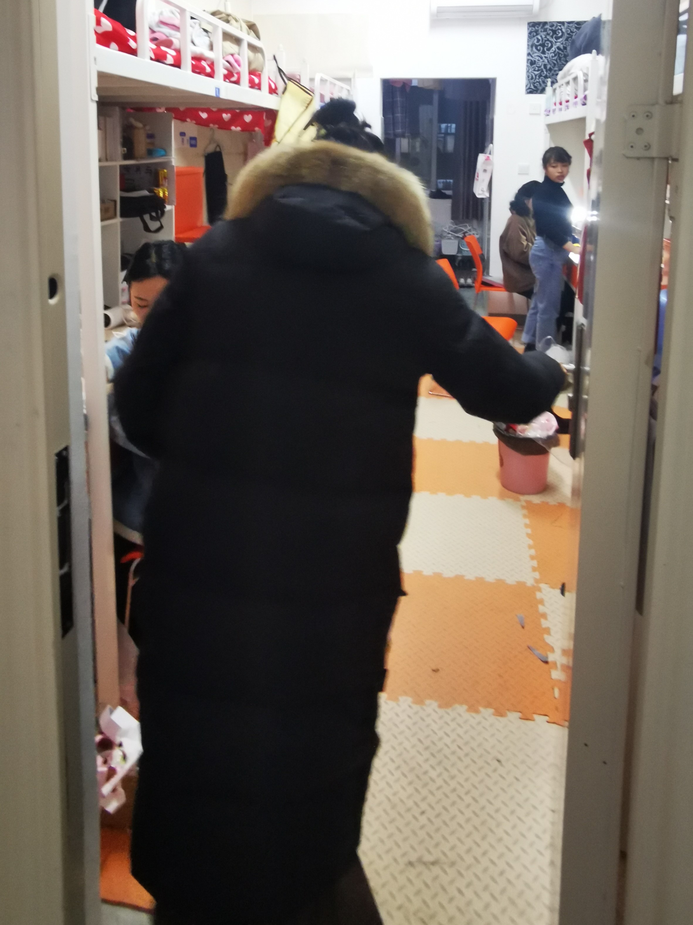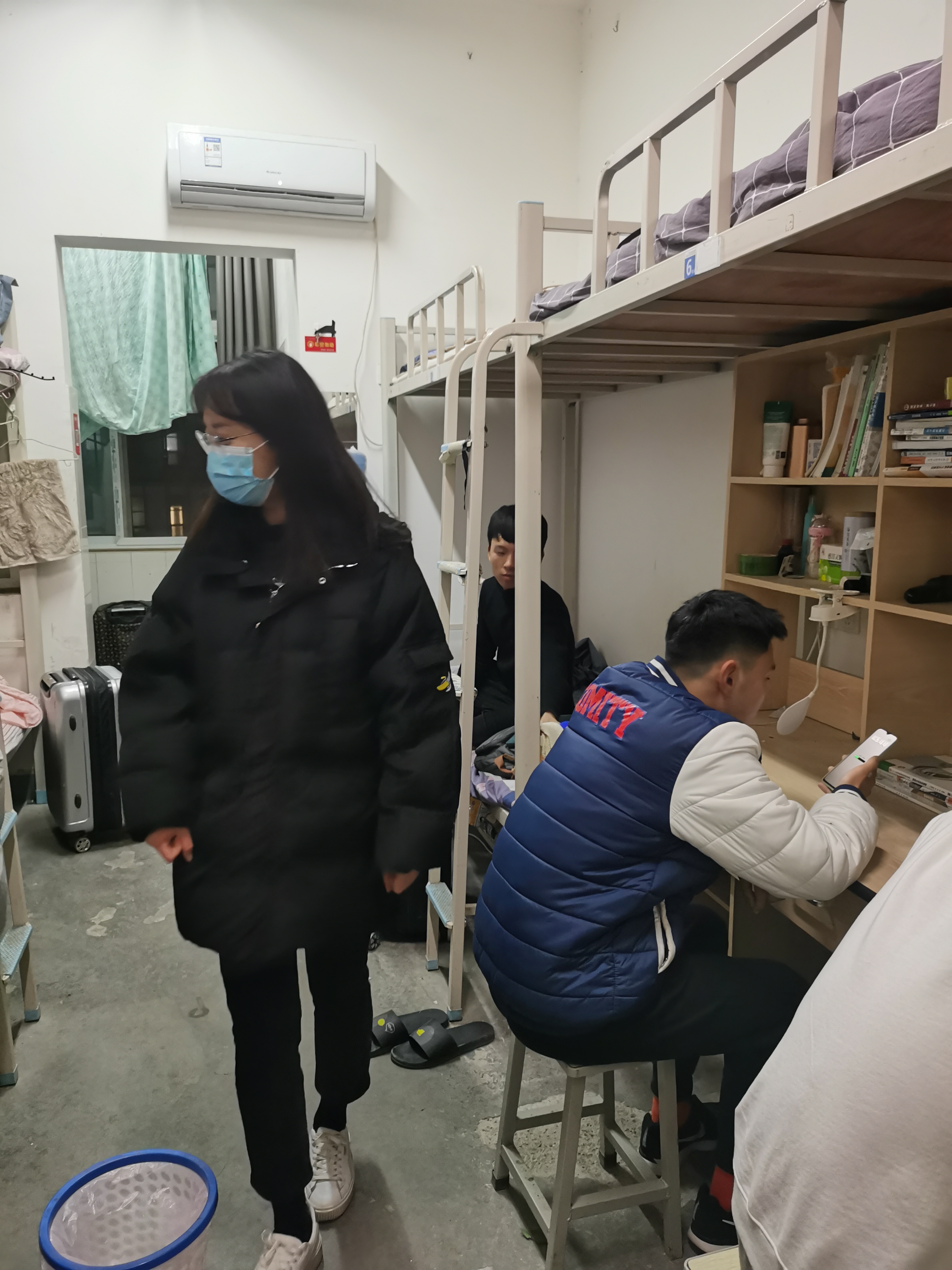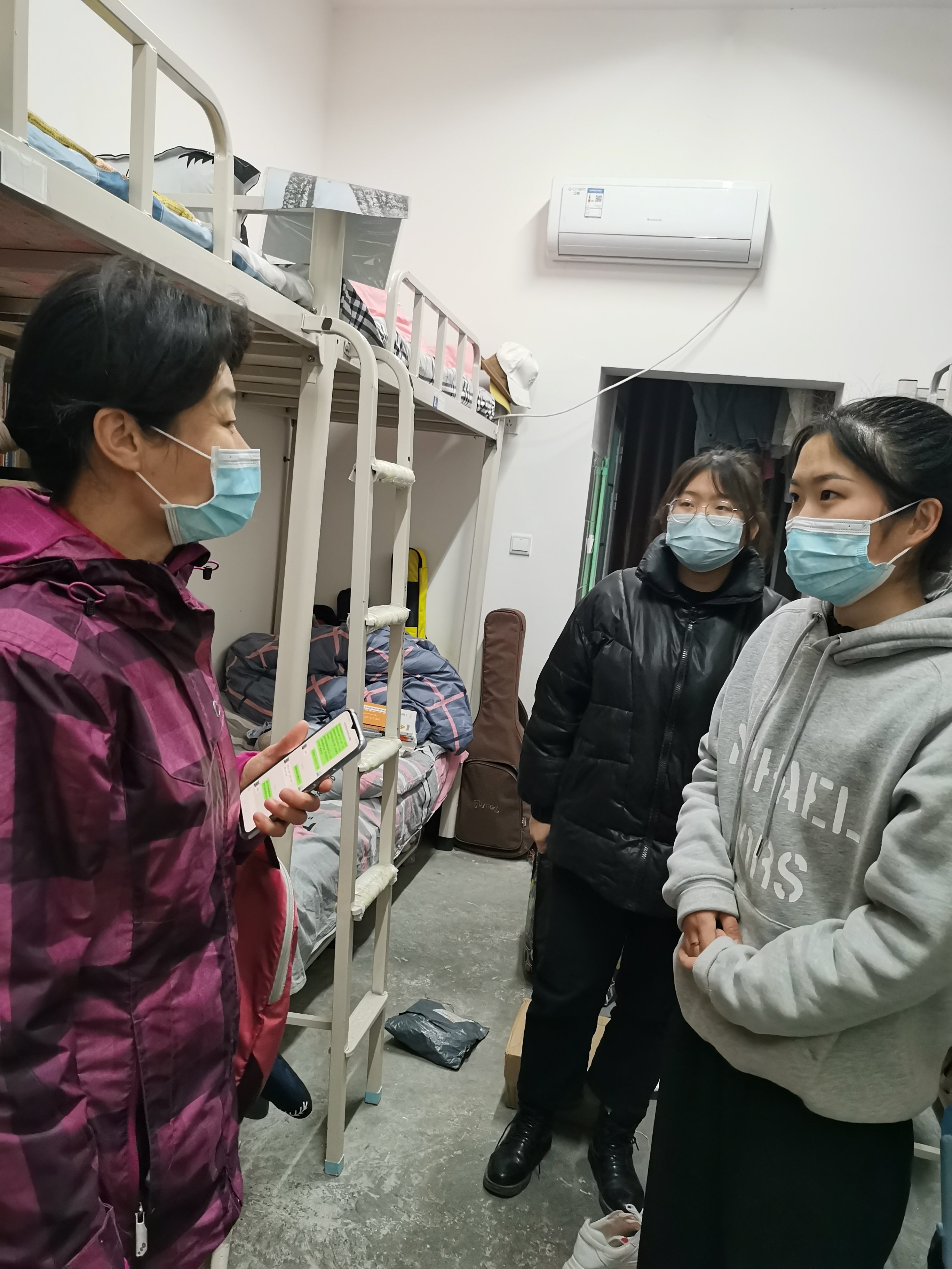 闫晗老师查看宿舍情况