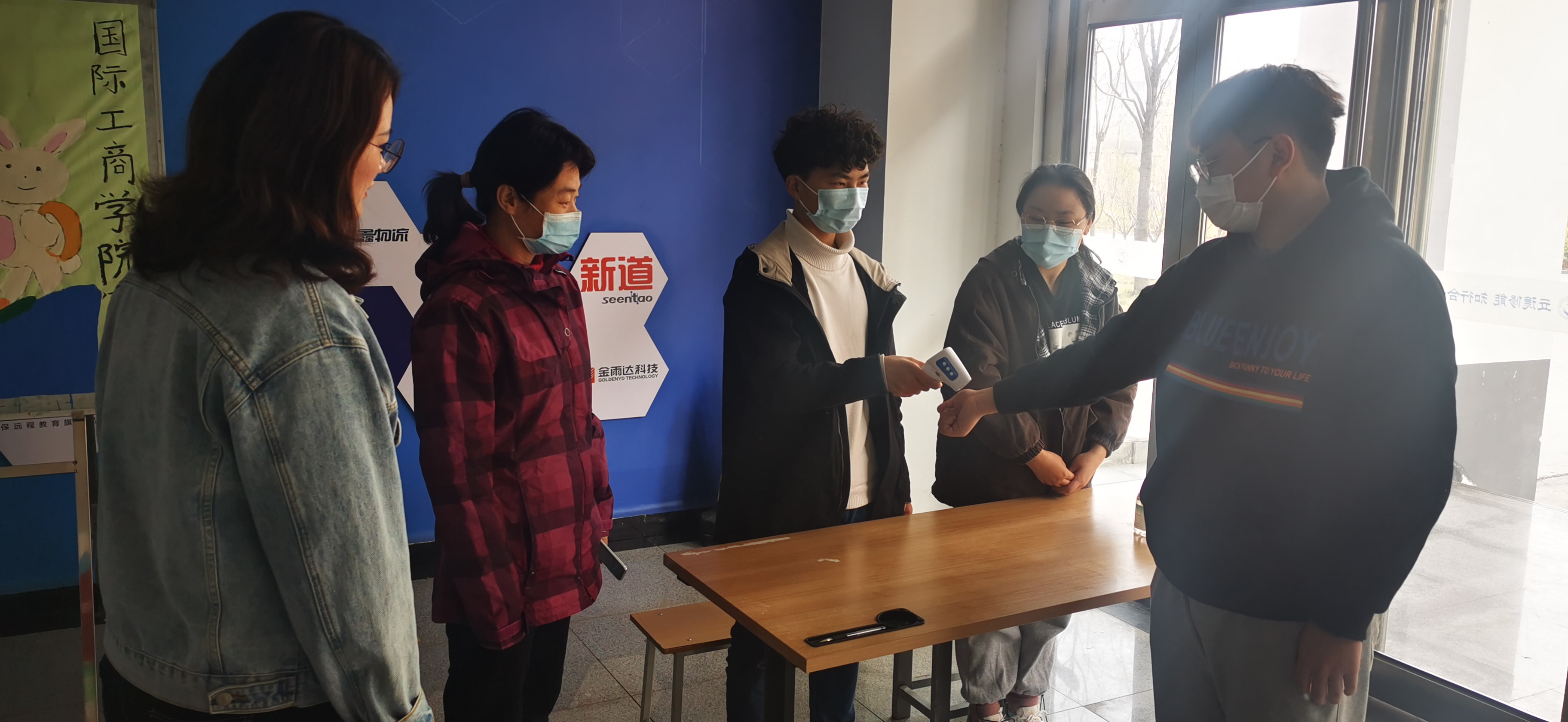 学生进入教学楼测量体温
