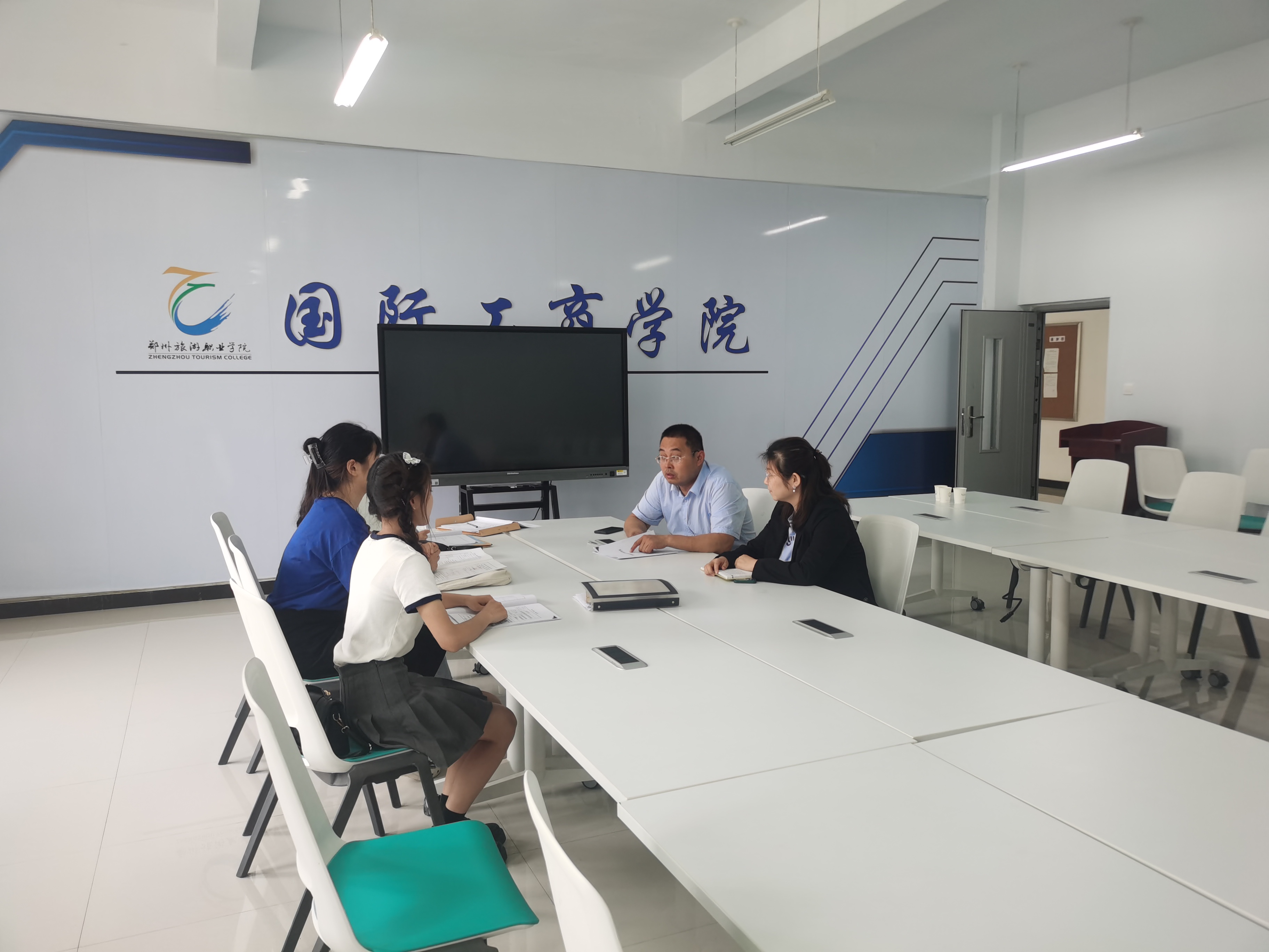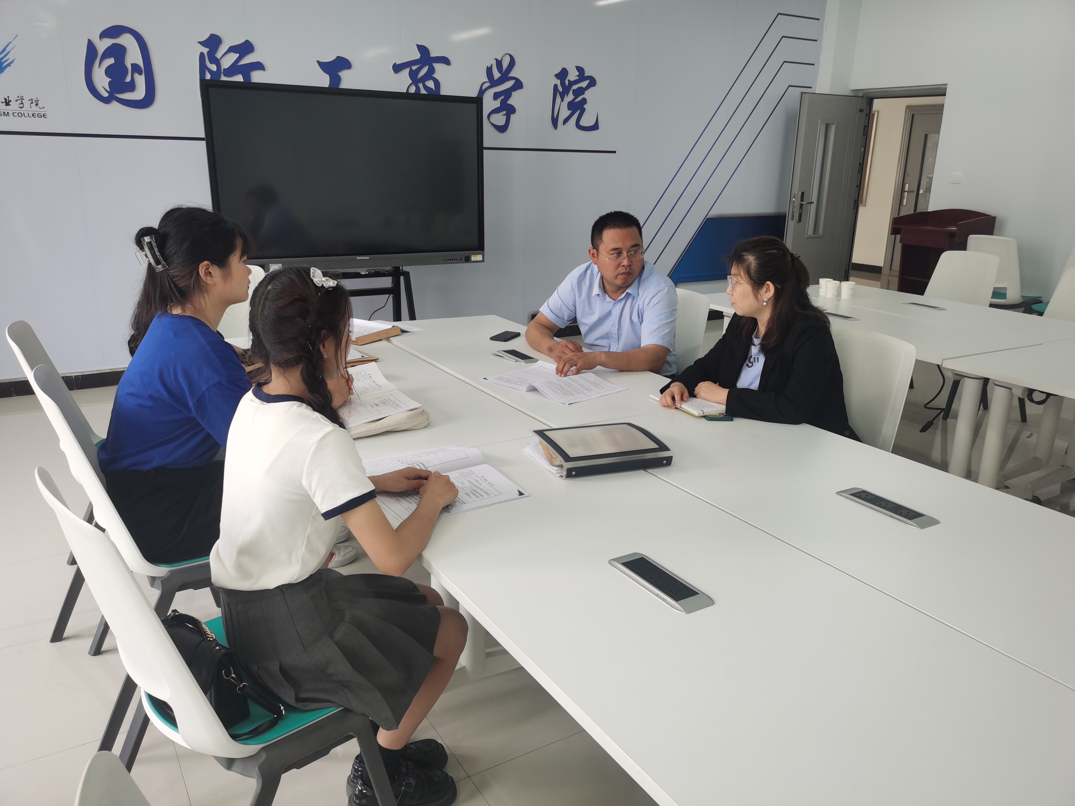 5月21日,国际工商学院院长孙权、学生党支部书记谢锡莹在教学楼1B304会议室与本学年党员发展对象进行谈心谈话。在谈话中,孙权院长、谢锡莹书记对李梅路、许玲玲、王依婷等发展对象的其在校表现情况进行了解,并就他们的入党动机、对党的认识等方面进行深入的思想谈话。