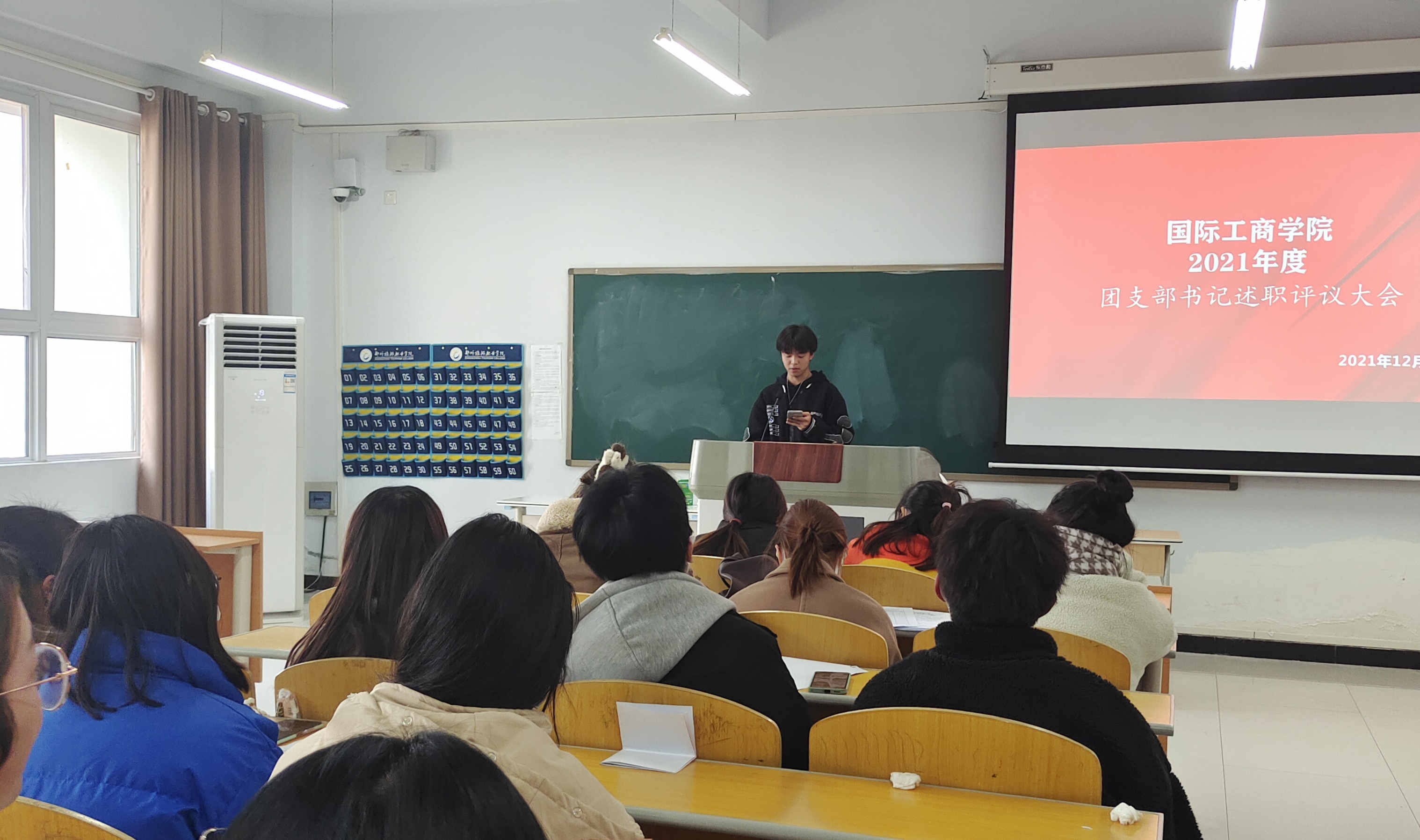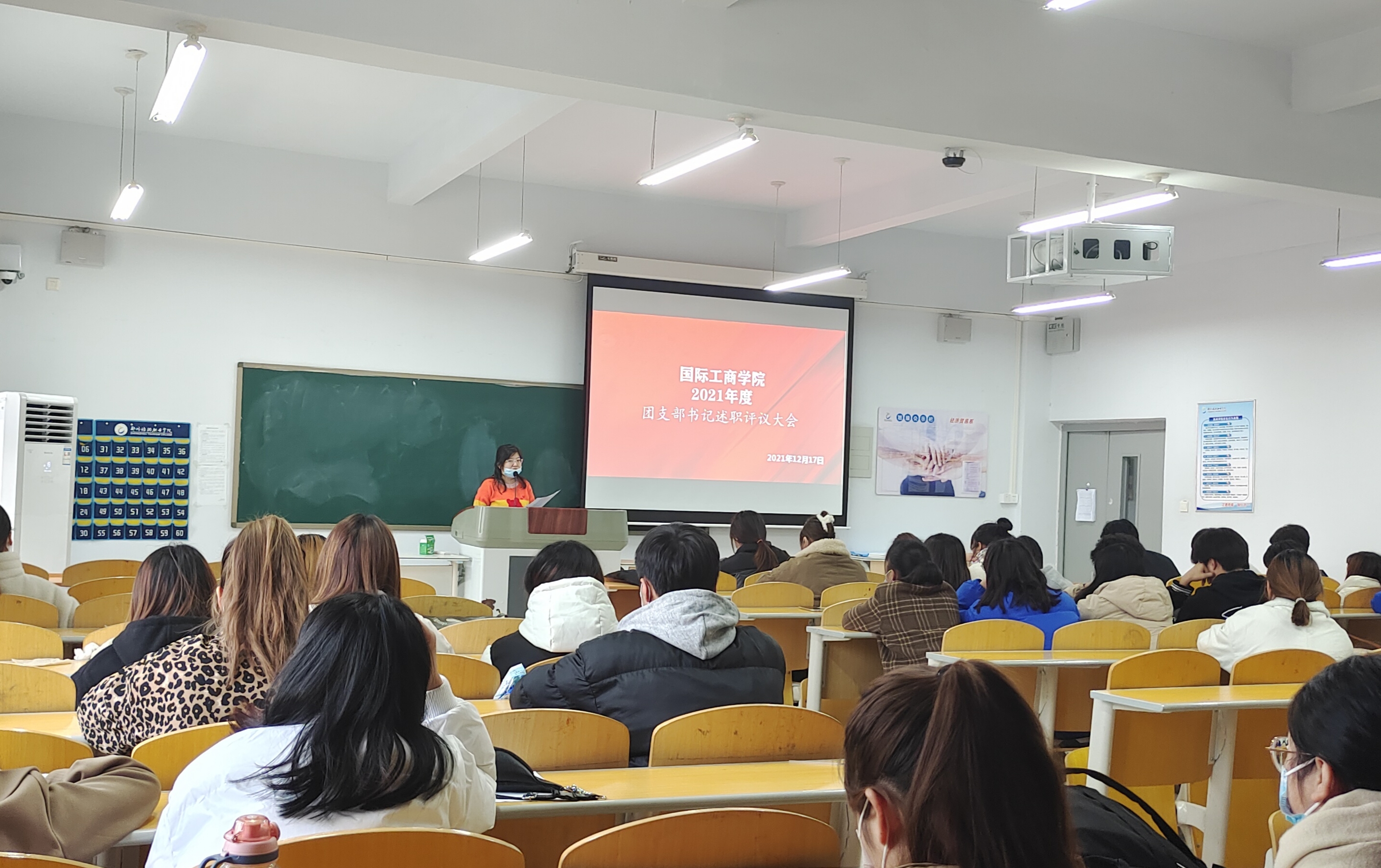 为贯彻落实团中央全面从严治团要求,进一步加强团员队伍组织建设,提高工作部署的落实成效,根据学校工作安排,国际工商学院于2021年12月17日在教学楼1B602召开团支部书记述职评议考核工作会。此次会议由团总支书记谢锡莹主持,20级和21级团支部书记参加。
