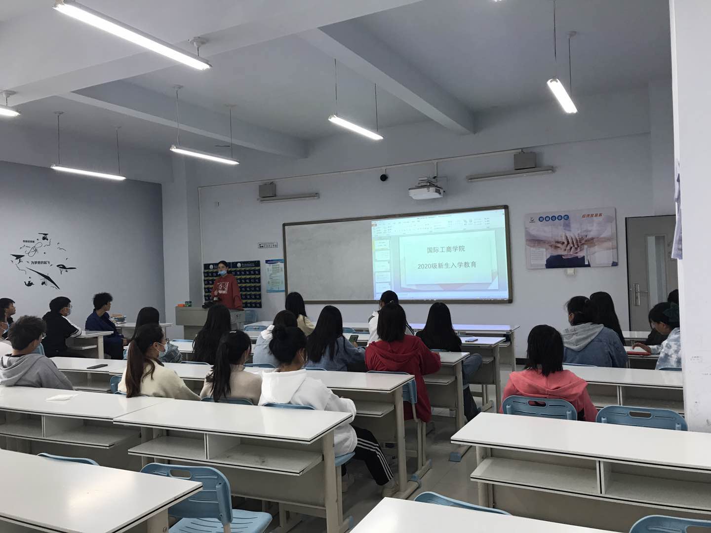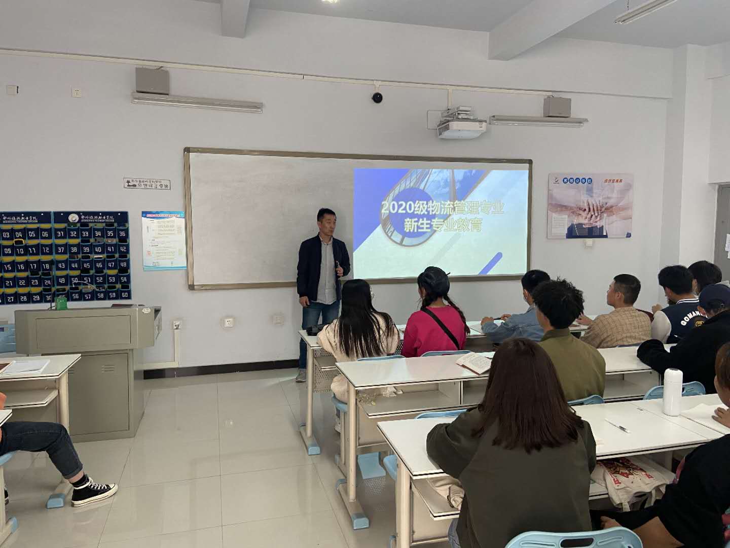 为了更好地促进大一新生对物流管理专业的了解,国际工商学院物流管理专业教研室主任陈玉杰老师,物流管理专业20级班主任牛波瑞和赵佳可老师于10月28日下午对物流管理专业20级学生开展了“2020级物流管理专业新生专业教育”。