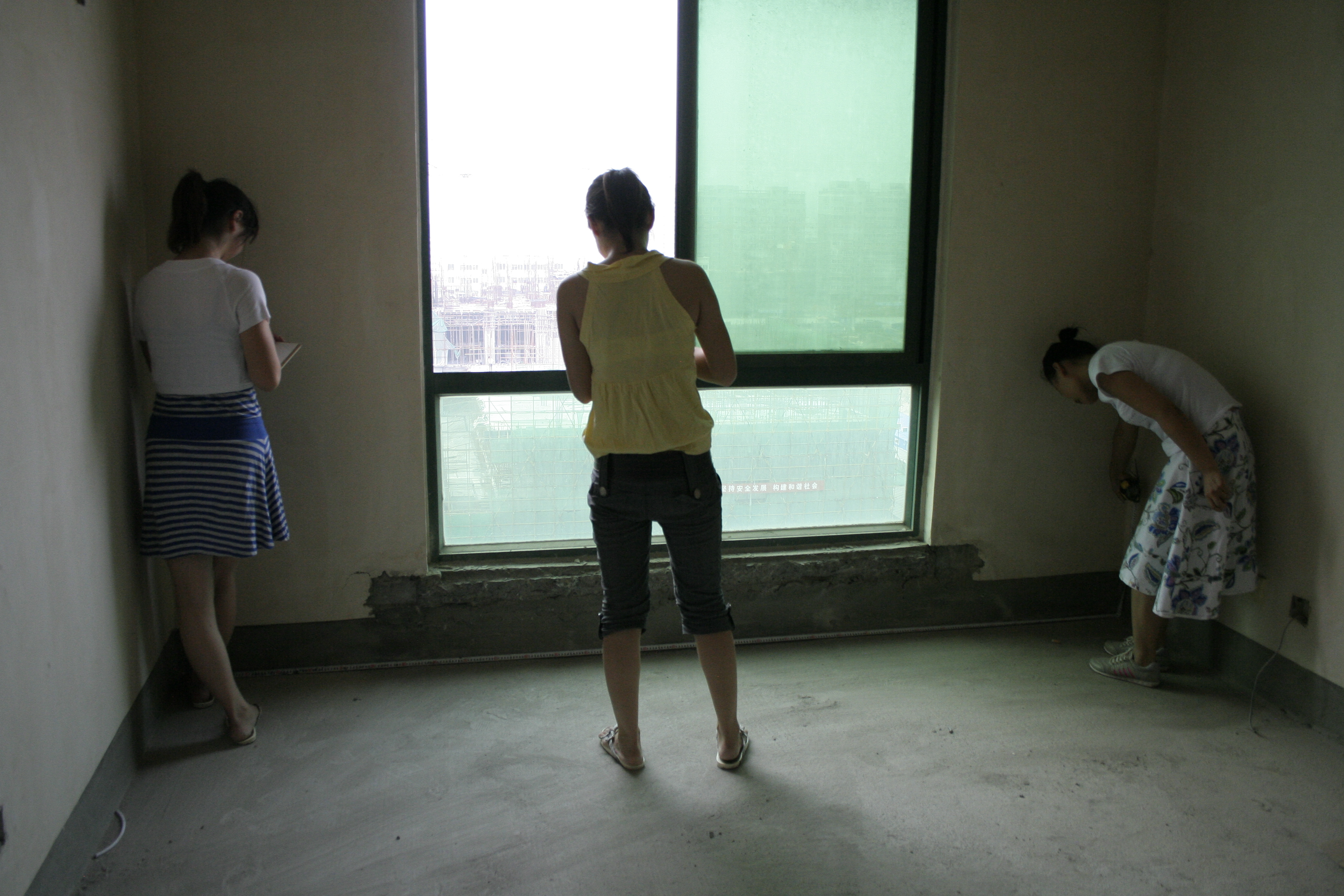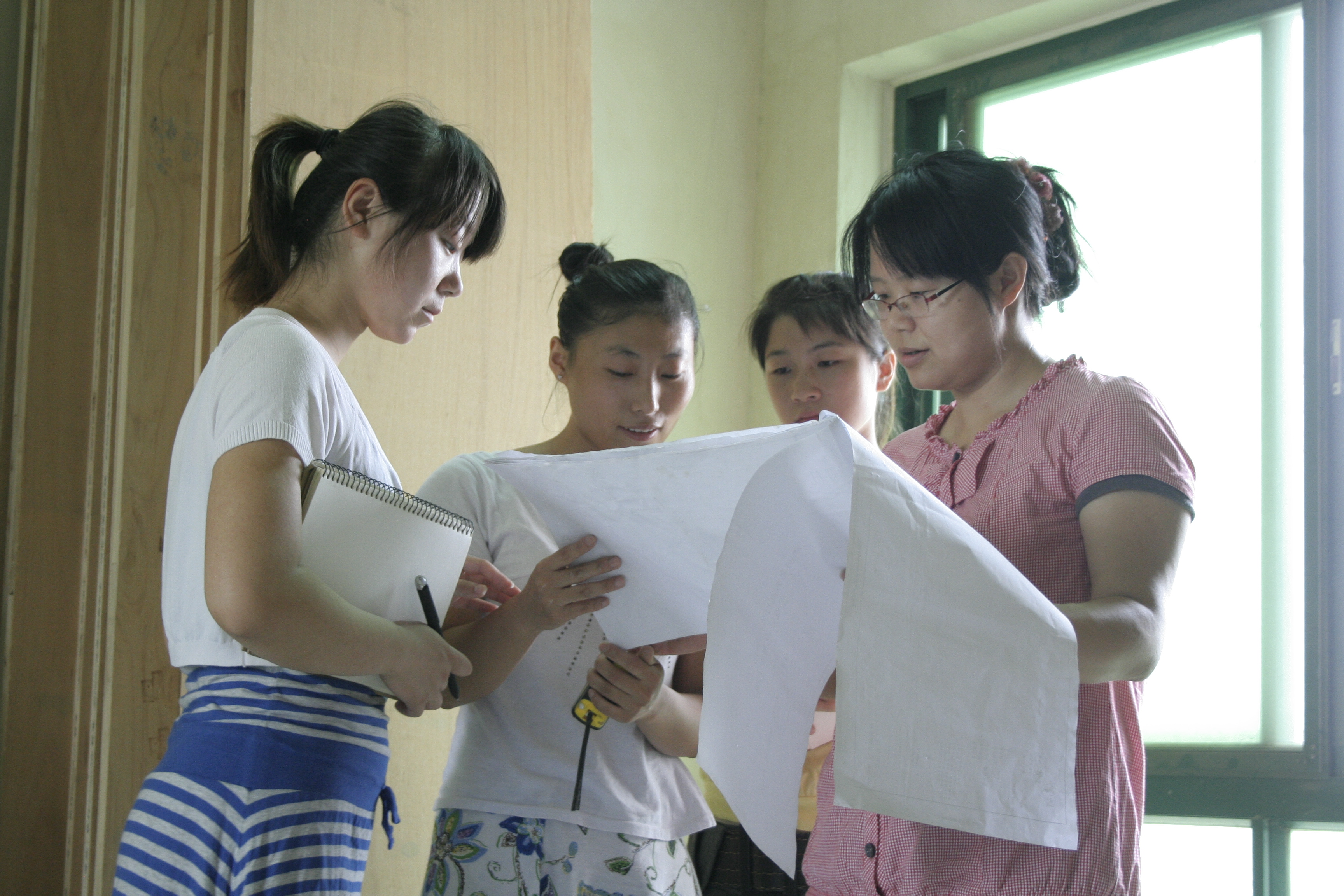 学生在实训基地进行量房、预算