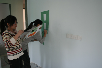 学生在实训基地进行墙体彩绘训练