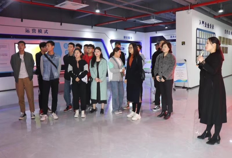 2019年11月7日上午,经济贸易系市场营销专业为了更好的帮助实习生了解实习单位,熟悉工作岗位,赵利肖、杨祎两位老师带领部分即将踏上实习岗位的市场营销专业学生来到位于平原新区的科诚孵化器进行参观学习。