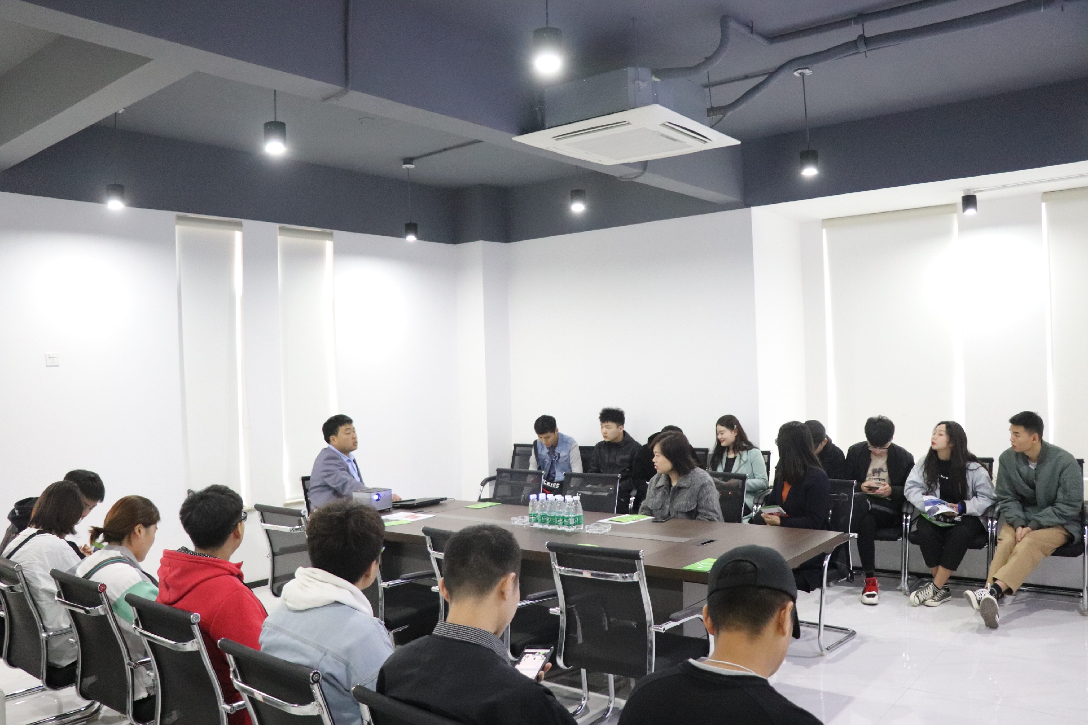 参观完毕后,大家来到会议室听取需要招聘人才的入孵企业负责人针对企业各方面的详细讲解。同学们认真聆听与记录,并进行了提问。