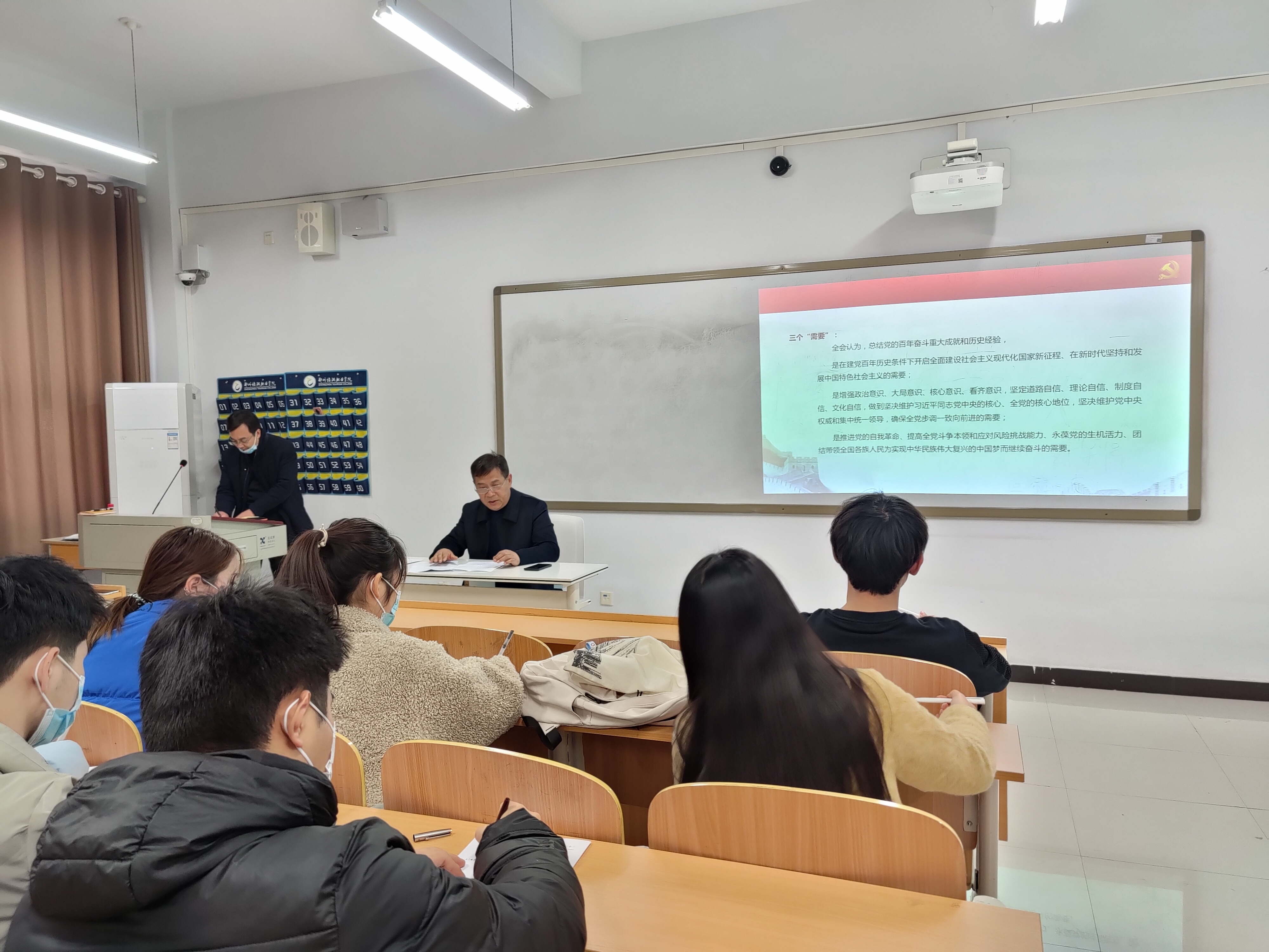 为迅速掀起学习宣传贯彻党的十九届六中全会精神热潮,全面推动党史学习教育走深走实,12月7日下午,国际工商学院在1B606教室开展“学习贯彻党的十九届六中全会精神,以史为鉴,开创未来”党史学习教育讲座。此次讲座由张鹏书记主持,特邀请徐永清副校长授讲,葛秀丽老师、孙文霞老师、2021年新晋的部分入党积极分子参加。