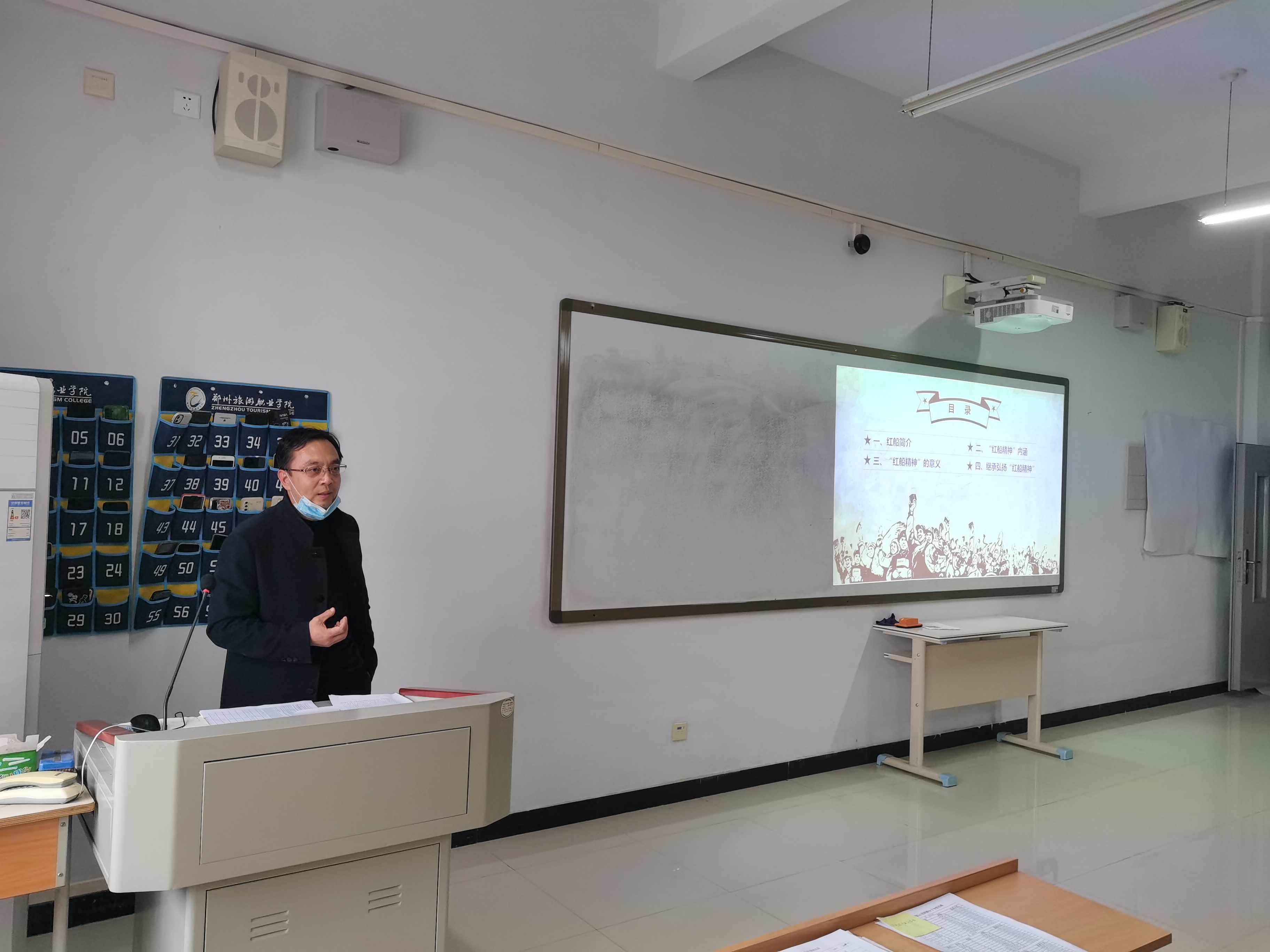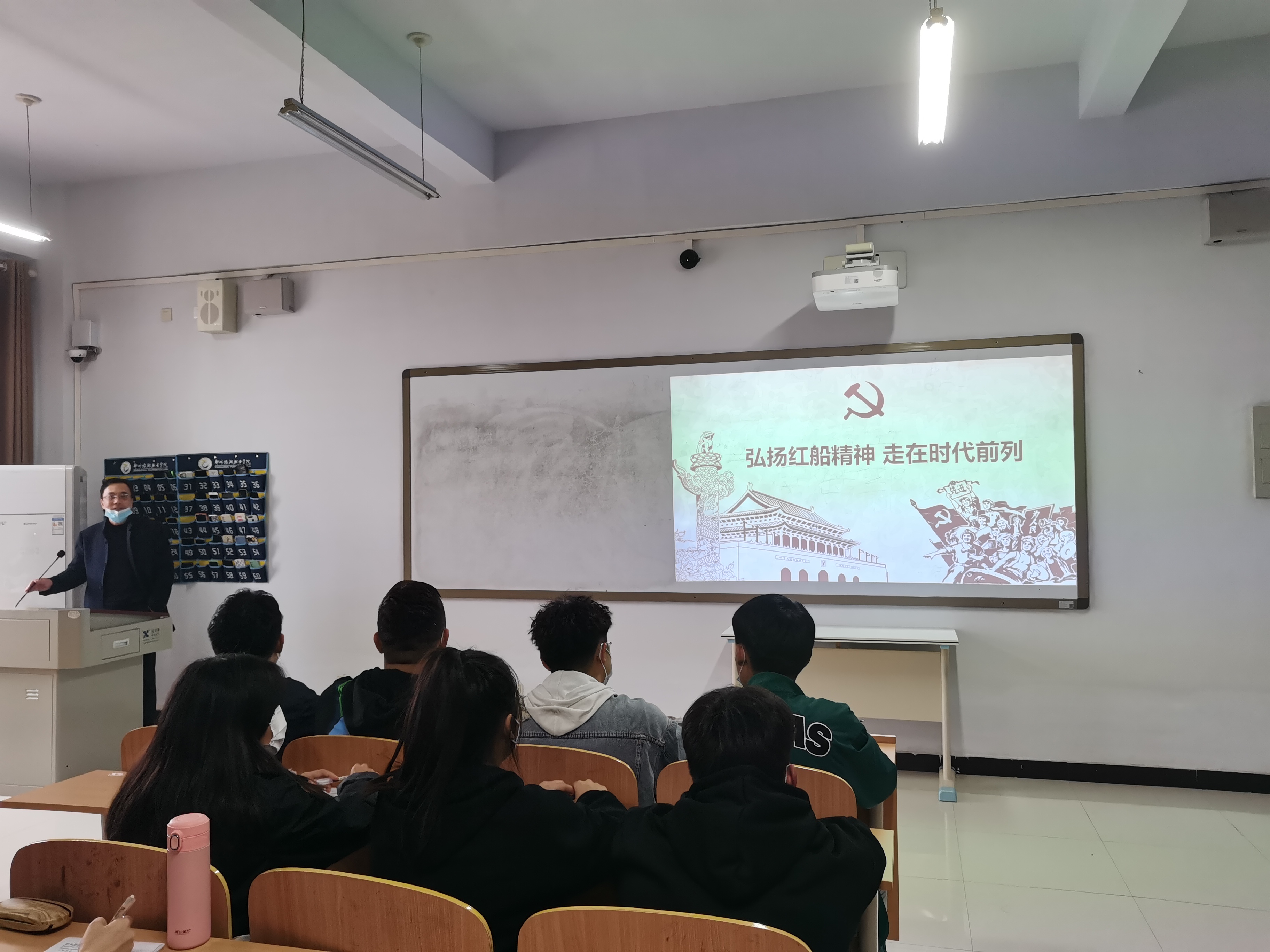 课上,张鹏首先采取随机提问的方式,以“为什么入党?”,“我们的国歌是什么?”为切入点讲述了红船精神的由来:1921年8月初,中国共产党第一次全国代表大会在浙江嘉兴南湖的一条游船上胜利闭幕,庄严宣告中国共产党的诞生。这条游船因而获得了一个永载中国革命史册的名字---红船。红船劈波行,精神聚人心。红船所代表和昭示的是时代高度,是发展方向,是奋进明灯,是铸就在中华儿女心中的永不褪色的精神丰碑。