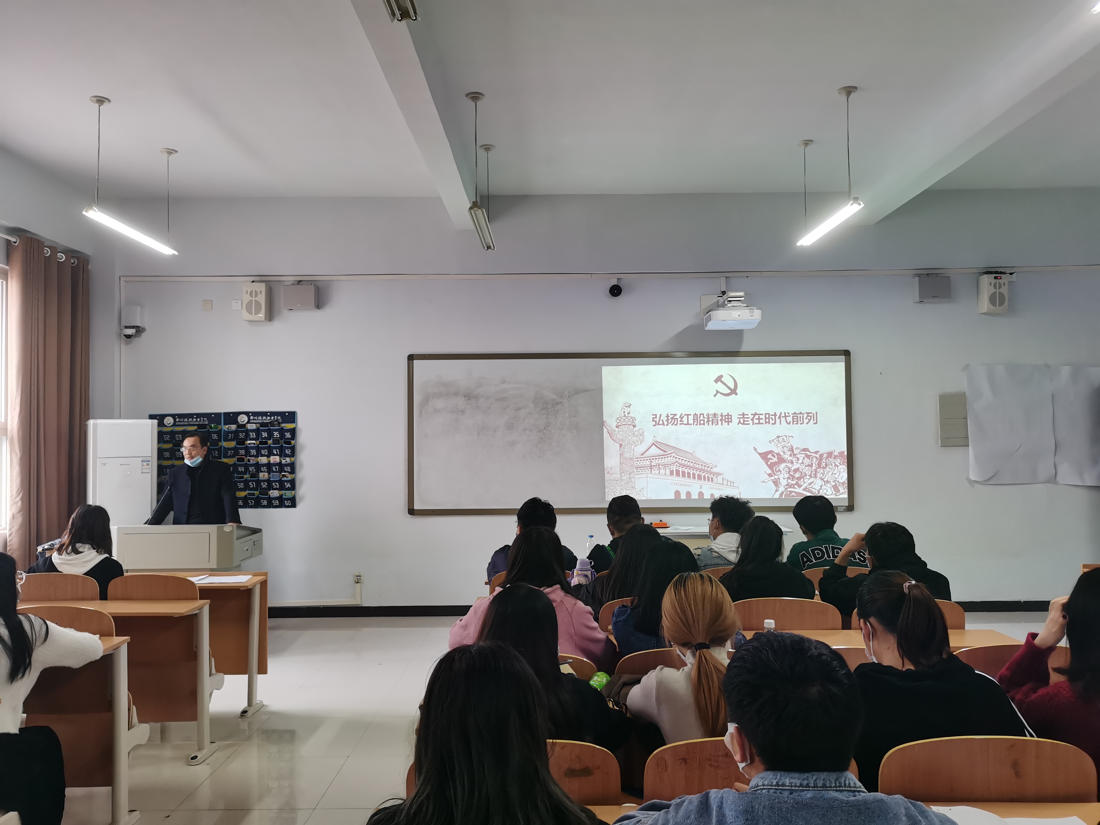 11月5日15:00,国际工商学院学生党支部组织2020级全体入党积极分子开展以“弘扬红船精神,走在时代前列”为主题的党课学习教育活动,党课由国际工商学院党总支书记张鹏授讲。