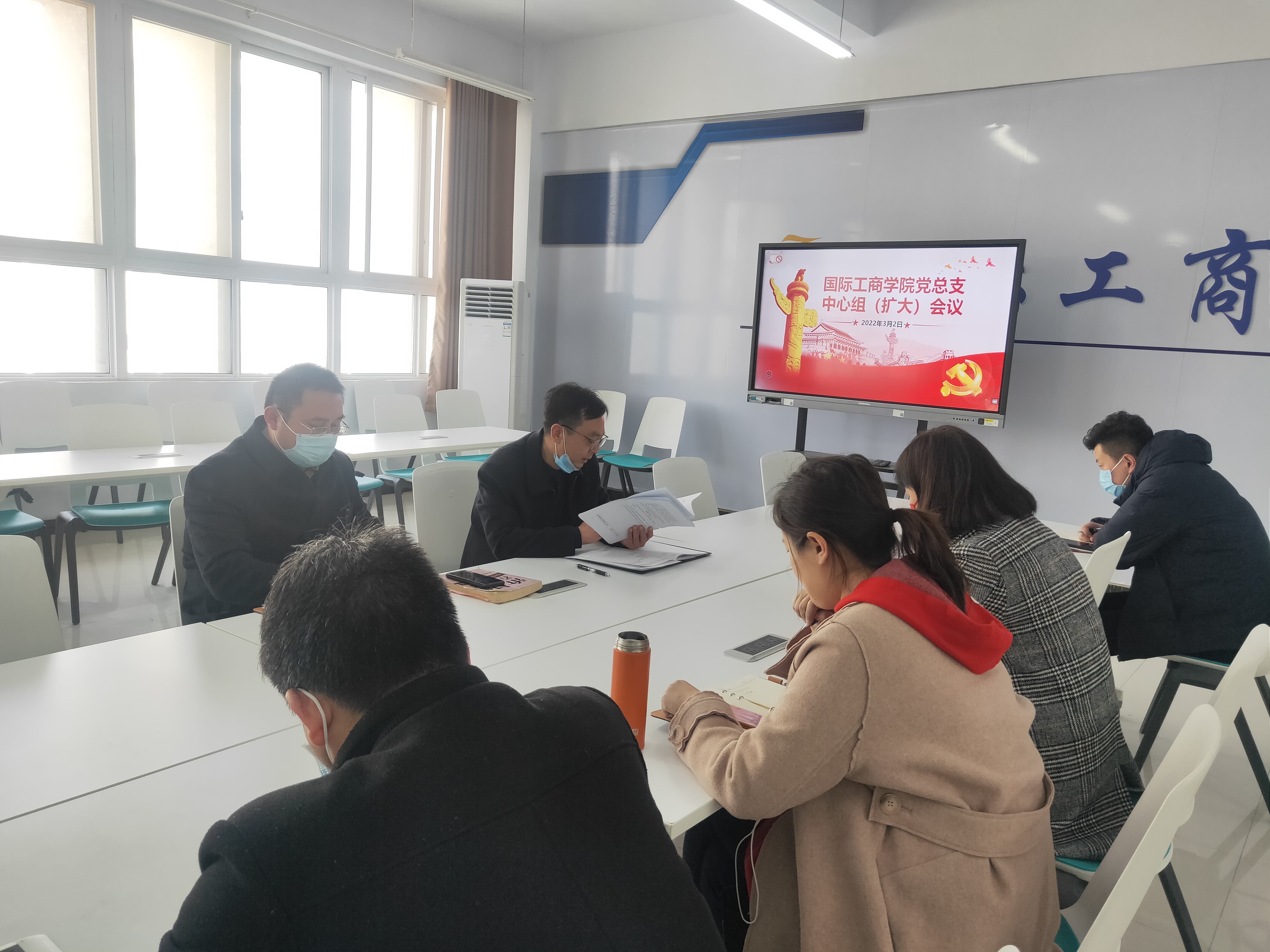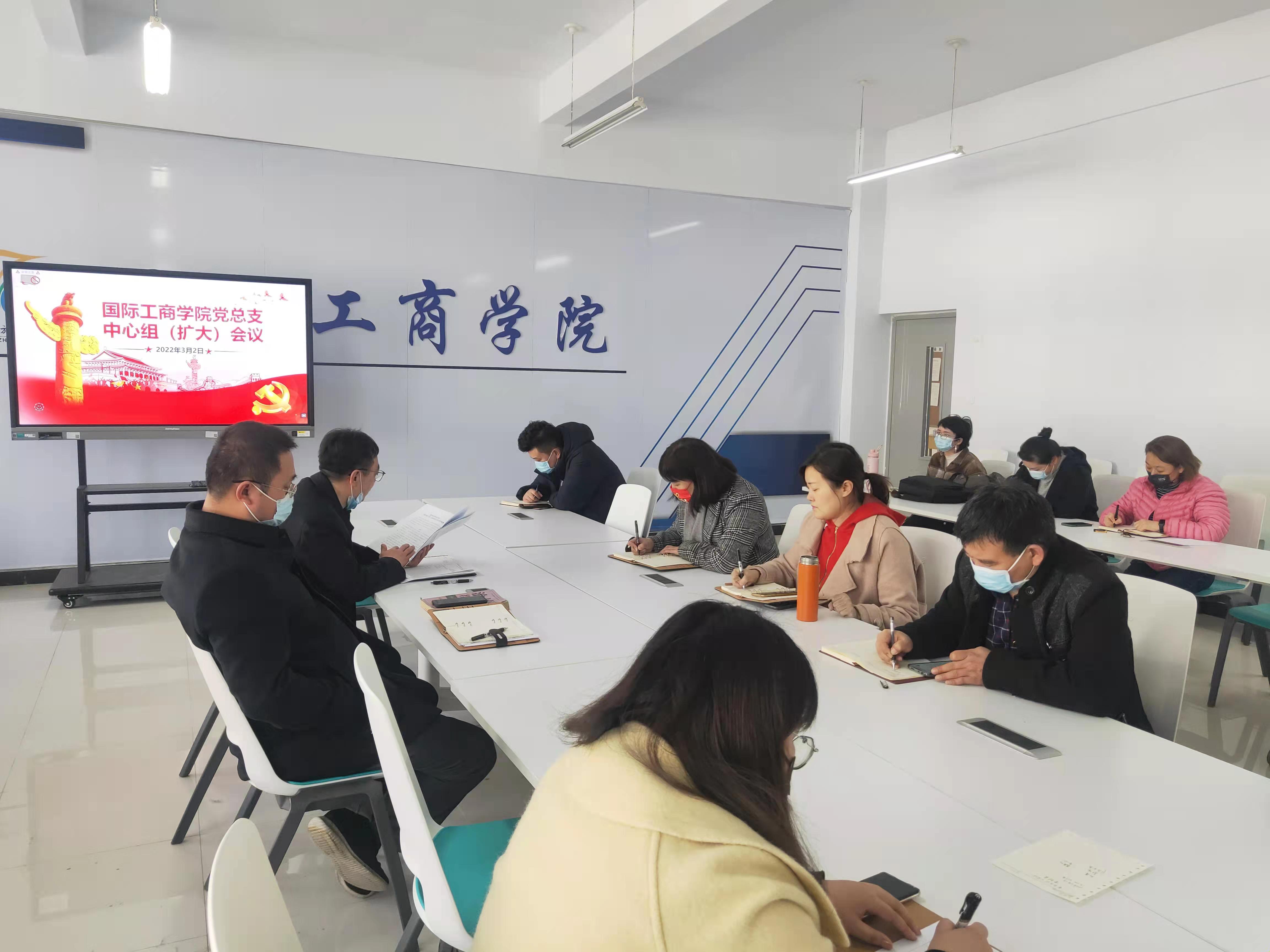 2022年3月2日下午,国际工商学院在1B304会议室召开党总支中心组(扩大)会议。国际工商学院党总支书记张鹏、院长孙权等总支成员参会,各党支部书记、教研室主任,党外人士列席会议。