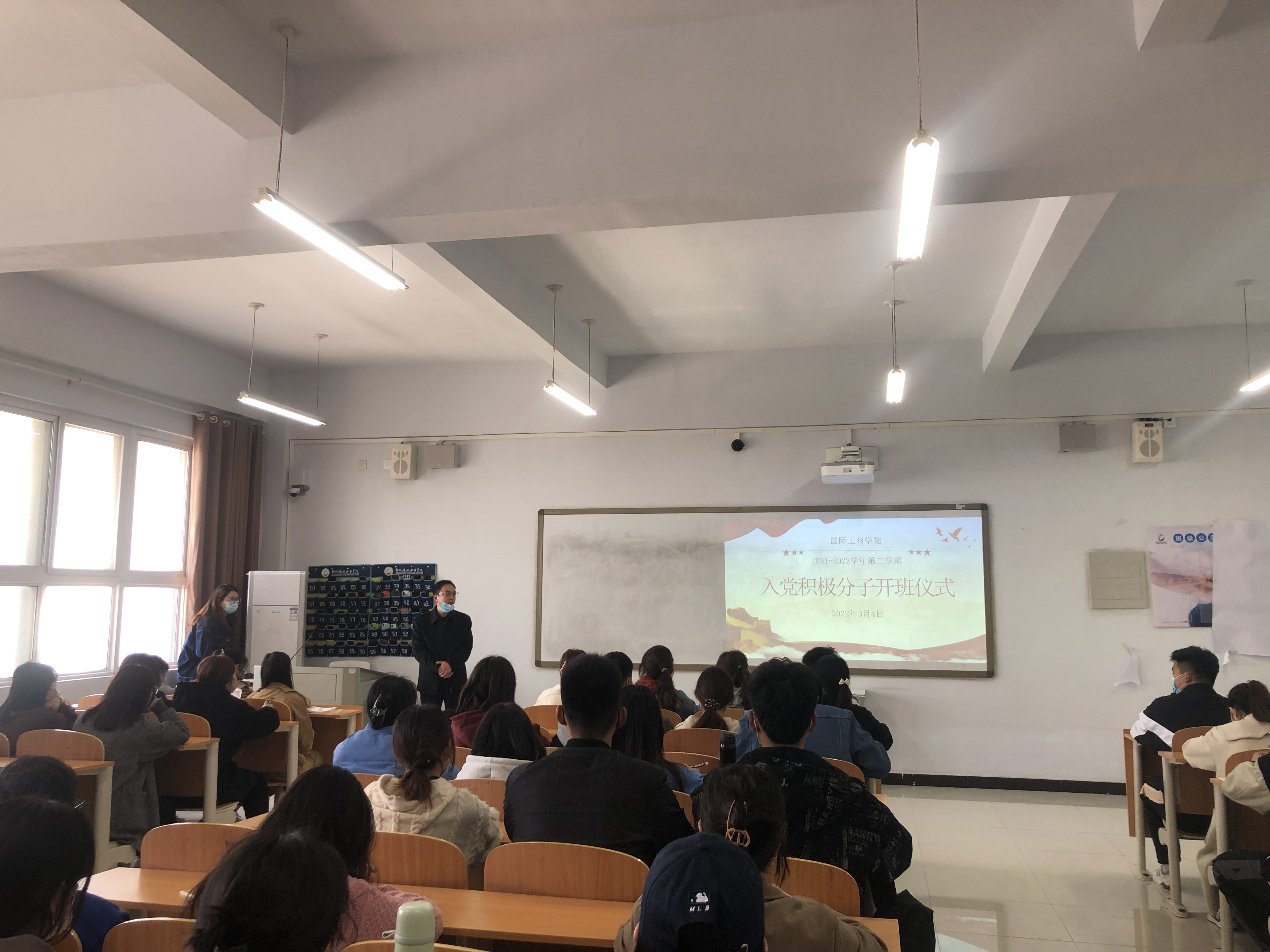 为加强党的基本理论知识教育,提高入党积极分子党性修养,做好入党积极分子的培养教育工作,进一步发展高质量党员,3月4日下午国际工商学院在1B606教室举行“入党积极分子培训开班仪式”。开班仪式由学生党总支部书记葛秀丽主持。党总支书记张鹏出席并讲话,2021年度全体入党积极分子参加。