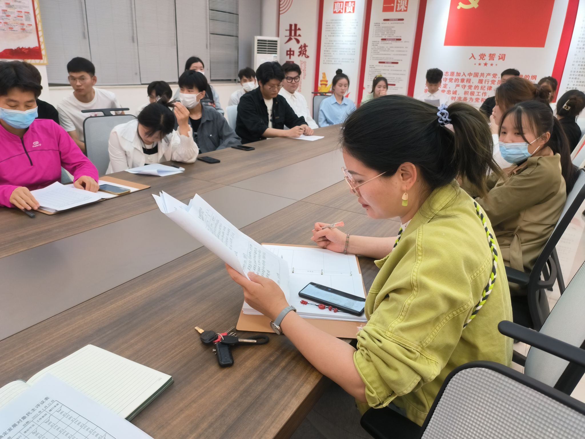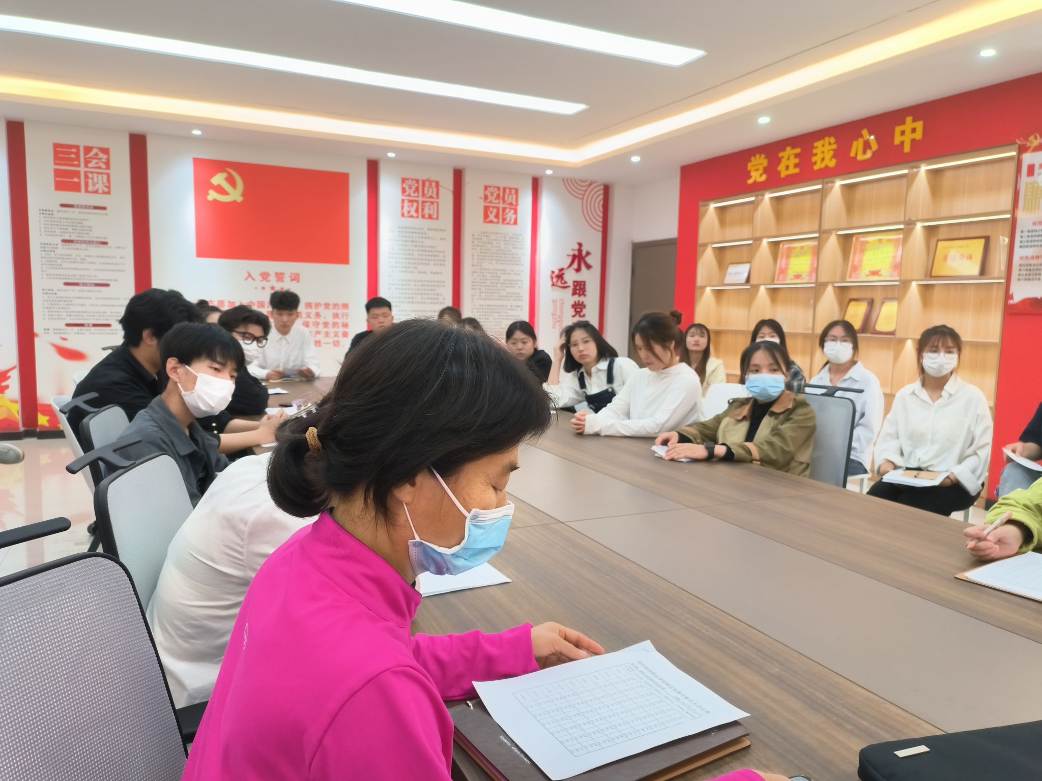 会前,学生党支部召开民主评议大会,由学生党支部5名正式党员、7名预备党员、8名群众对李书舟等21名入党积极分子做出民主评议。会上,孙文霞同志介绍民主评议大会的纪律要求及注意事项。