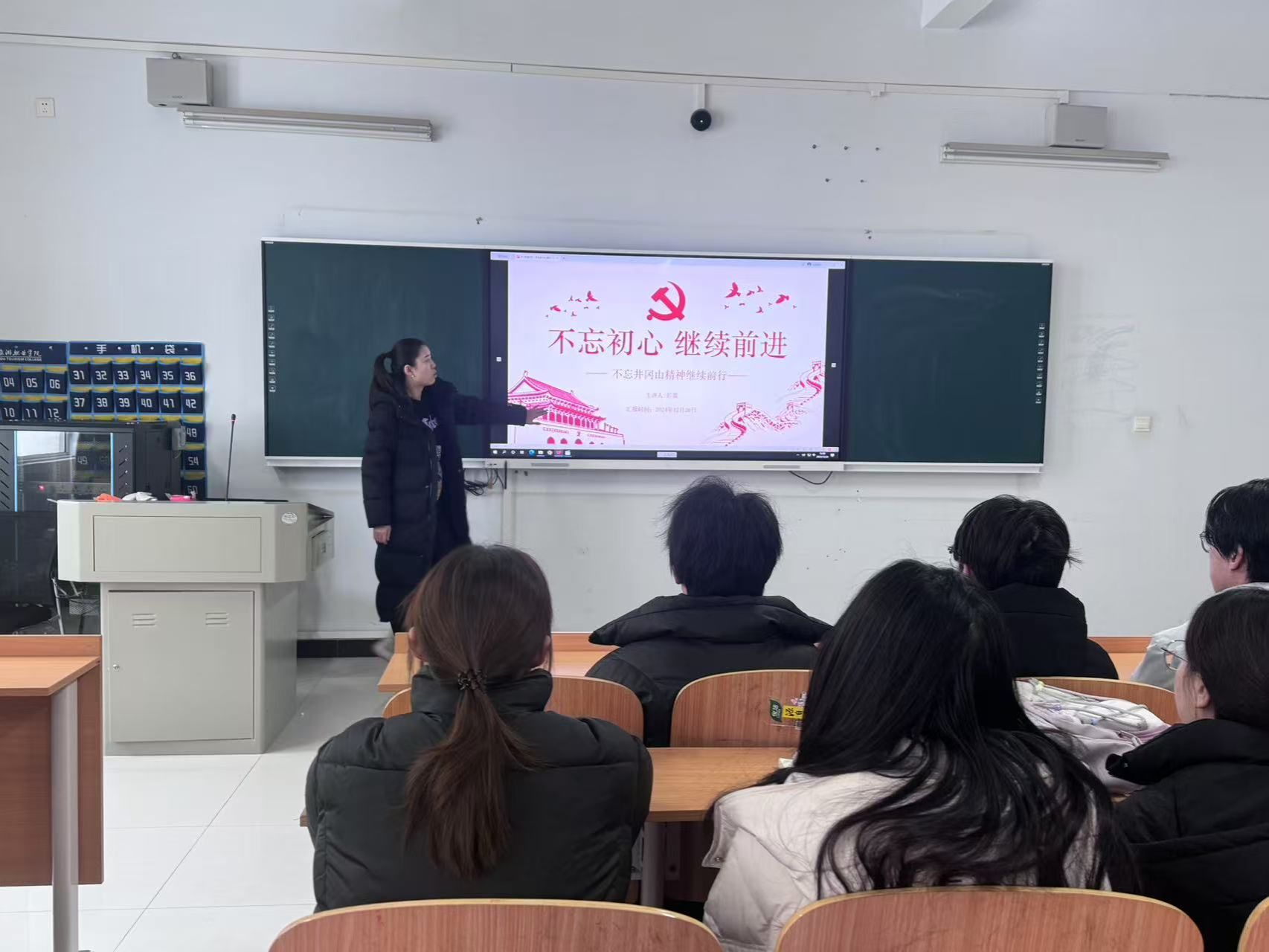 2024年12月26日,国际工商学院在教学楼1b203教室举行了院级“青马工程”第四讲。本次“青马工程”由彭蕾老师主讲,国际工商学院青马学员参加。此次讲座,旨在深入解读井冈山精神的内涵与价值。通过对井冈山精神的核心要素、历史背景、时代意义等方面的阐述,让学员们深刻理解井冈山精神在当代社会的重要性课程中,彭蕾老师通过观看专题片形式,让学员们深刻感受到了当年井冈山斗争的艰苦卓绝和革命先辈们的坚定信念。