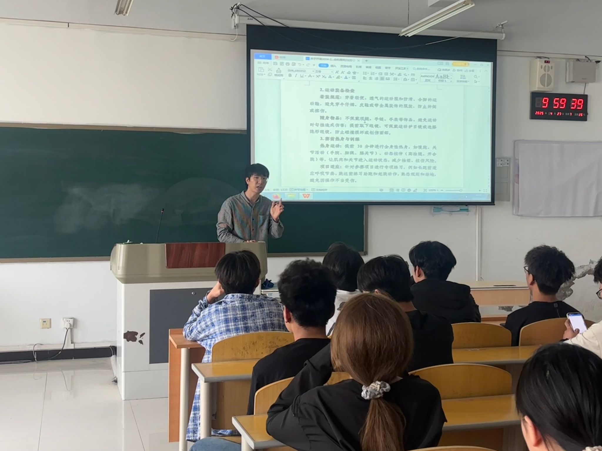 会上,学院老师首先强调了安全在运动会中的核心地位。详细讲解了从运动会前的准备工作到比赛期间以及赛后的各项安全要点,要求参赛选手务必重视身体状况自查,若有身体不适或先天性疾病要如实上报。在运动装备方面,需严格遵循规范着装,确保运动安全。同时,针对不同比赛项目,老师细致阐述了相应的安全注意事项,如径赛项目中跑步间距的保持、田赛项目的投掷安全等,还对突发情况的应对方法进行了培训,让每位参会人员都能在遇到意外时冷静处理。