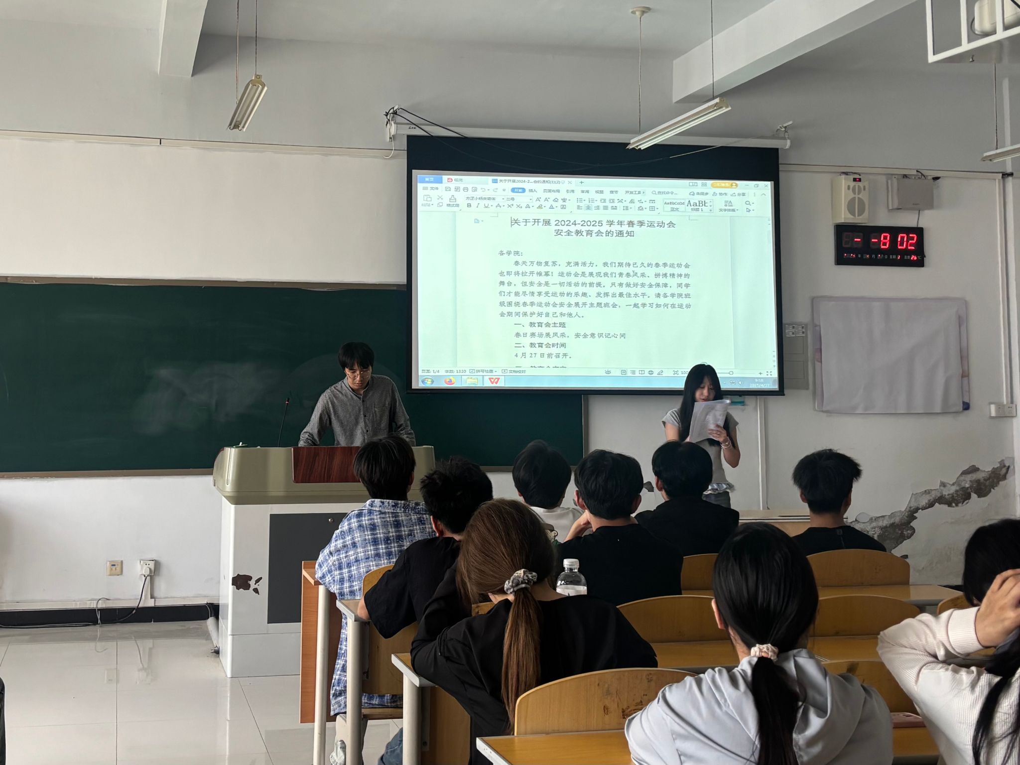 4 月 27 日,国际工商学院在 1B602 教室召开春季运动会推进会,为即将到来的校春季运动会做最后的筹备冲刺。此次会议聚焦安全保障与赛事准备,全体运动会负责人员和参赛选手齐聚一堂,共商赛事事宜。