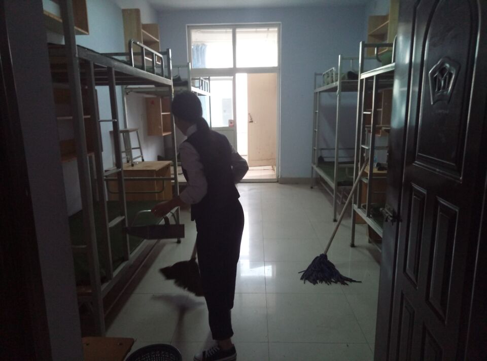 在明确分工、严格要求新生宿舍各种事务的盘查标准后,学长们对近100间新生宿舍进行了逐一盘查。在盘查宿舍过程中,程婕老师对宿舍内各种设施的摆放方式进行示范和指导。在程婕老师细心指导和耐心讲解下,新生学长的工作迅速展开。经过两个小时的盘查和认真打扫,地面干净整洁,宿舍内物品摆放整齐划一。虽然盘查和打扫很累,但是为了学弟学妹们能更好的入住,感受到经贸系大家庭的温暖,学长们心甘情愿。