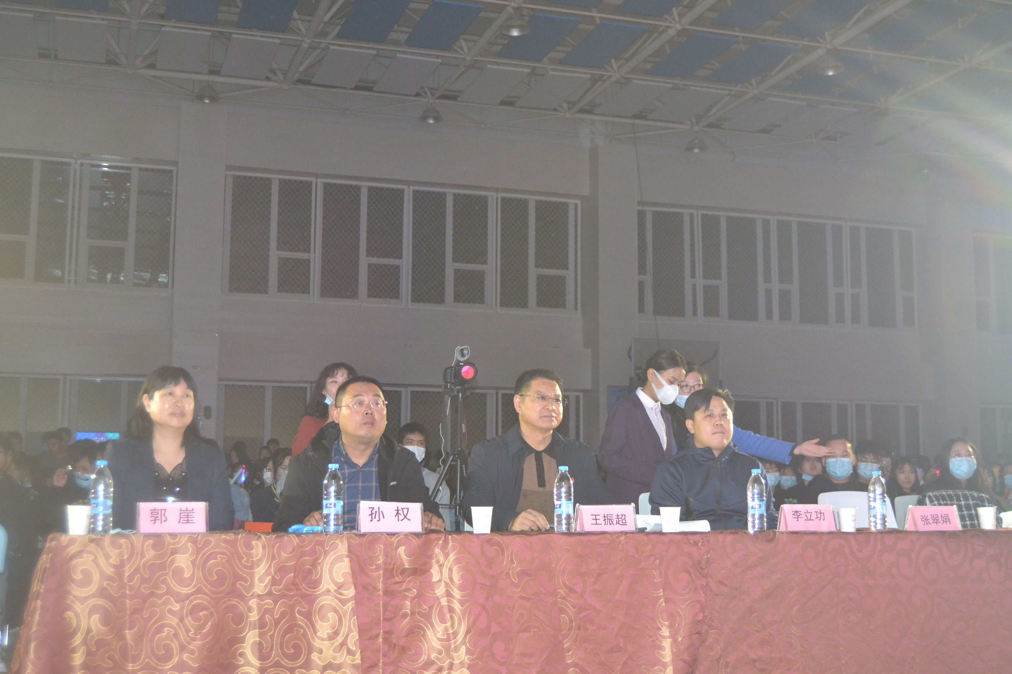 11月3日18:00,国际工商学院2020级“以梦为马,不负韶华”迎新晚会在体育馆三楼拉开帷幕,晚会由郭渊科、马铭洋主持。出席观看此次晚会的有pp电子副院长王振超、校团委书记李立功、国际工商学院院长孙权、党总支副书记郭崖、团总支书记谢锡莹、辅导员彭蕾、张权、李冰、林翔鲲,2020级全体新生观看晚会表演。