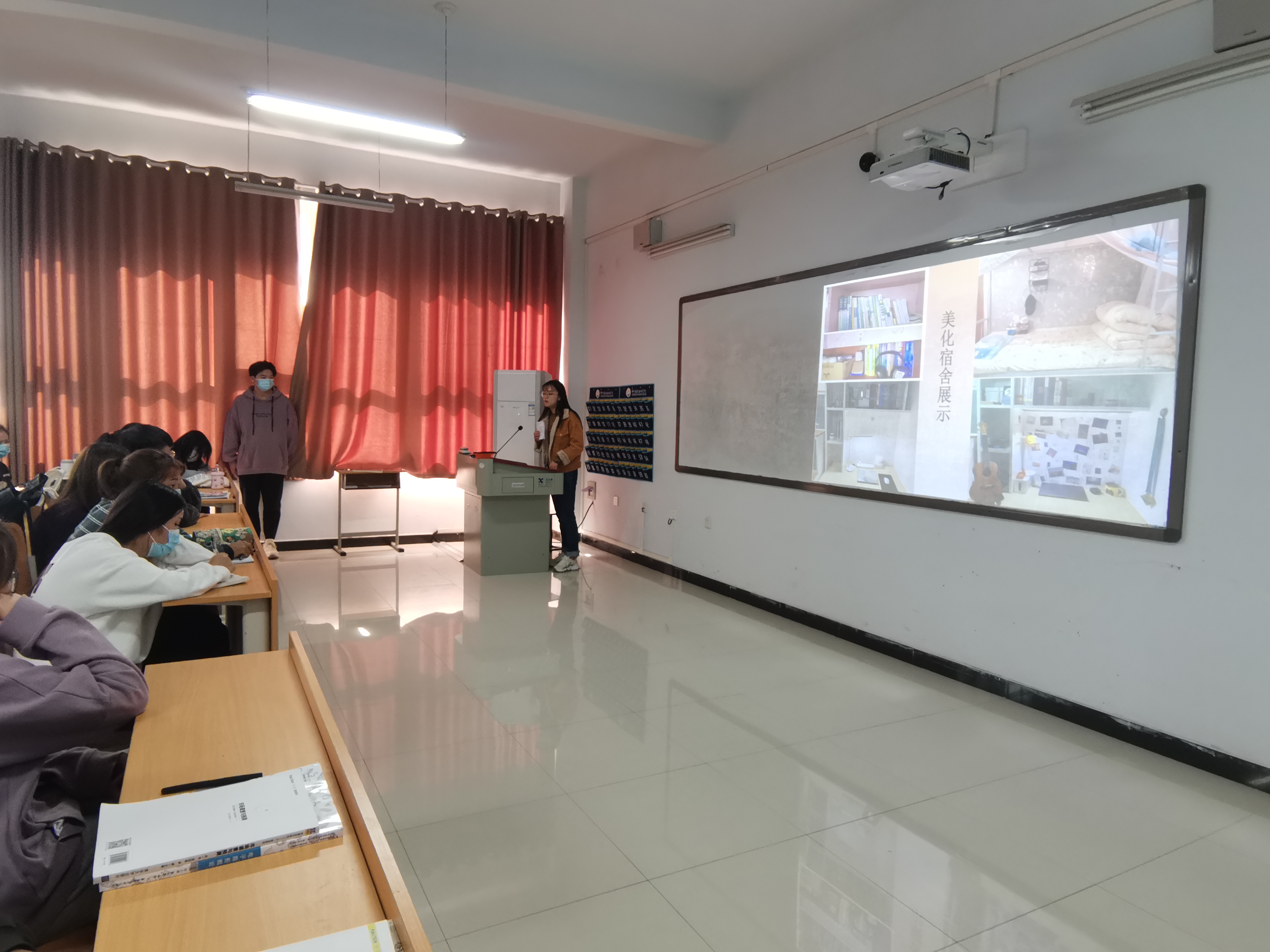 会议期间,生活部负责老师闫晗向大家介绍了“我型我宿”美化活动的主要内容和标准。“我型我宿”活动是宿舍进行宿舍美化评比,共分为三个阶段,分别是宣传动员阶段,活动展开阶段和活动总结阶段。该活动主要以宿舍卫生、室内美化为重点,抓好宿舍美化建设的基础工程,要求符合优秀文明宿舍评比标准。活动地点为国际工商学院各学生宿舍;活动评比及颁奖在教学楼1B104;活动对象国际工商学院全体学生;活动时间2020年10月28日—11月30日;活动安排活动评出一等奖9间、二等奖18间、三等奖28间,共55间宿舍。