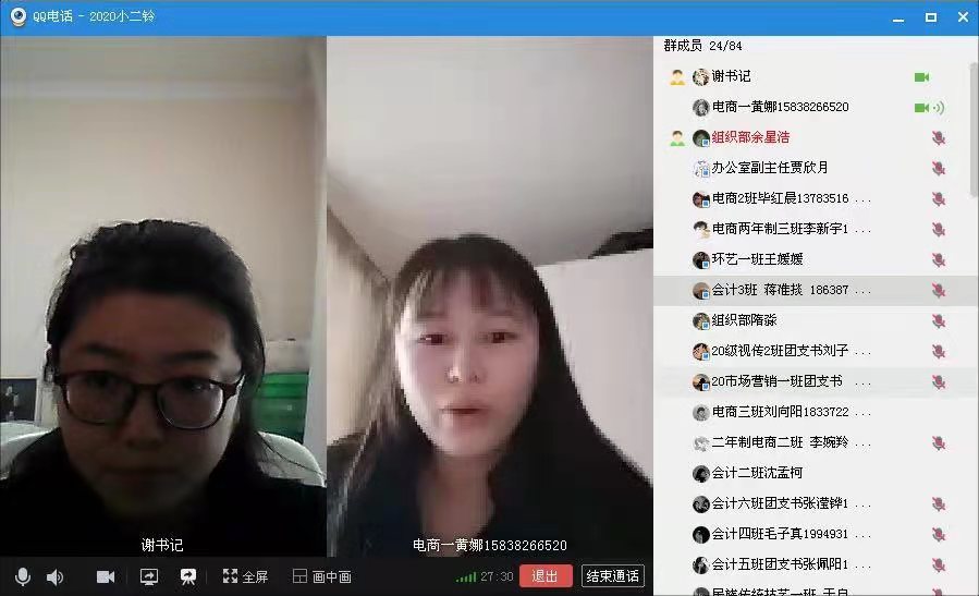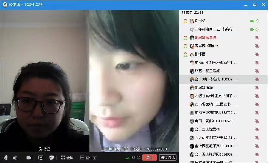 1月29日10:00,国际工商学院通过QQ群视频召开国际工商学院2020年度团支部书记述职大会,本次会议由国际工商学院团总支书记谢锡莹主持,团总支各部门学生干部以及国际工商学院所有团支部书记参加会议。