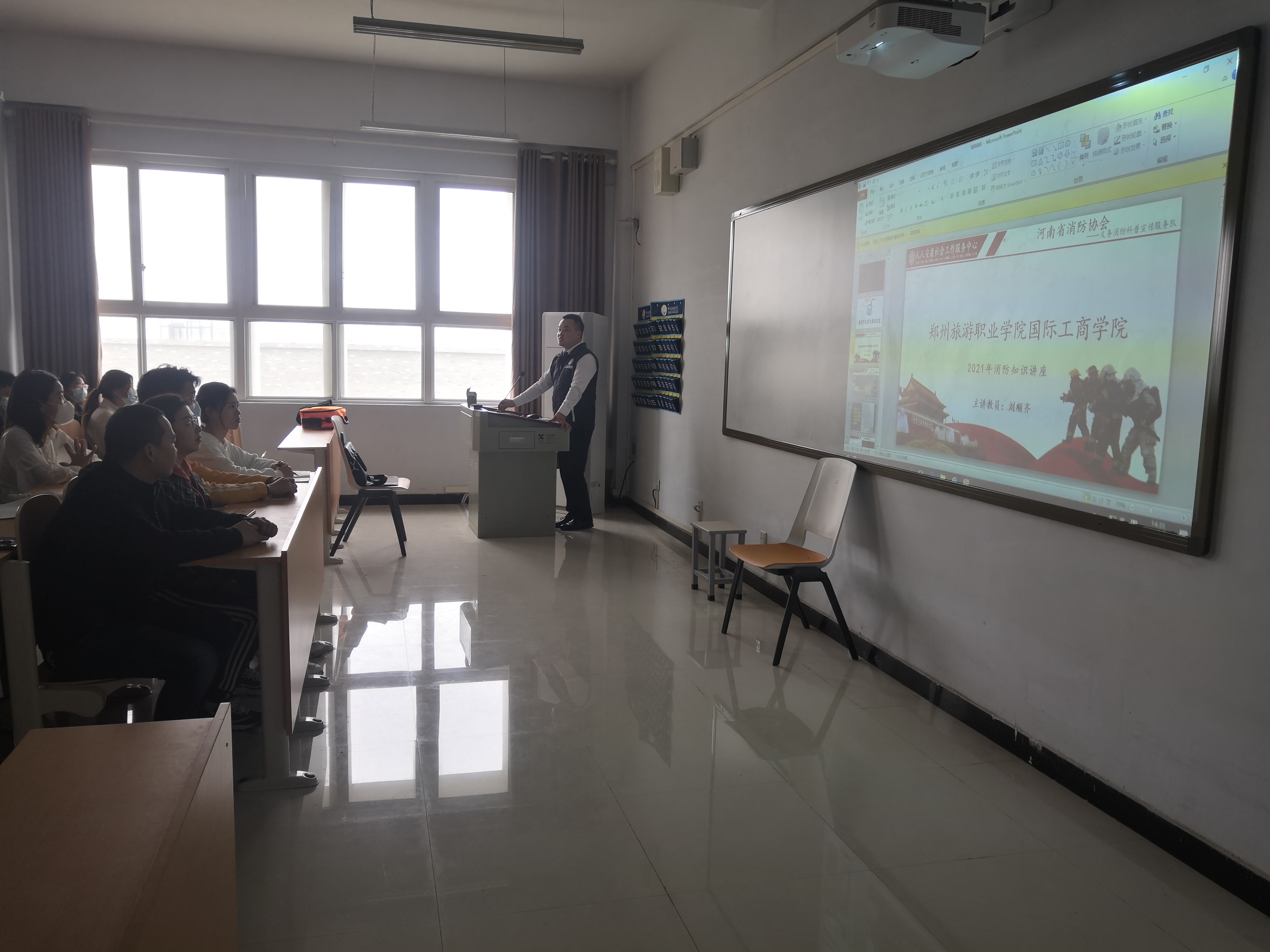 为进一步加强国际工商学院全体师生消防安全意识,全力普及消防安全知识。4月14日,国际工商学院邀请河南省消防安全协会刘顺齐教员在1B教学楼606教室开展消防安全知识培训讲座。参加本次培训会的有团总支书记谢锡莹,辅导员张权及2020级安全员。